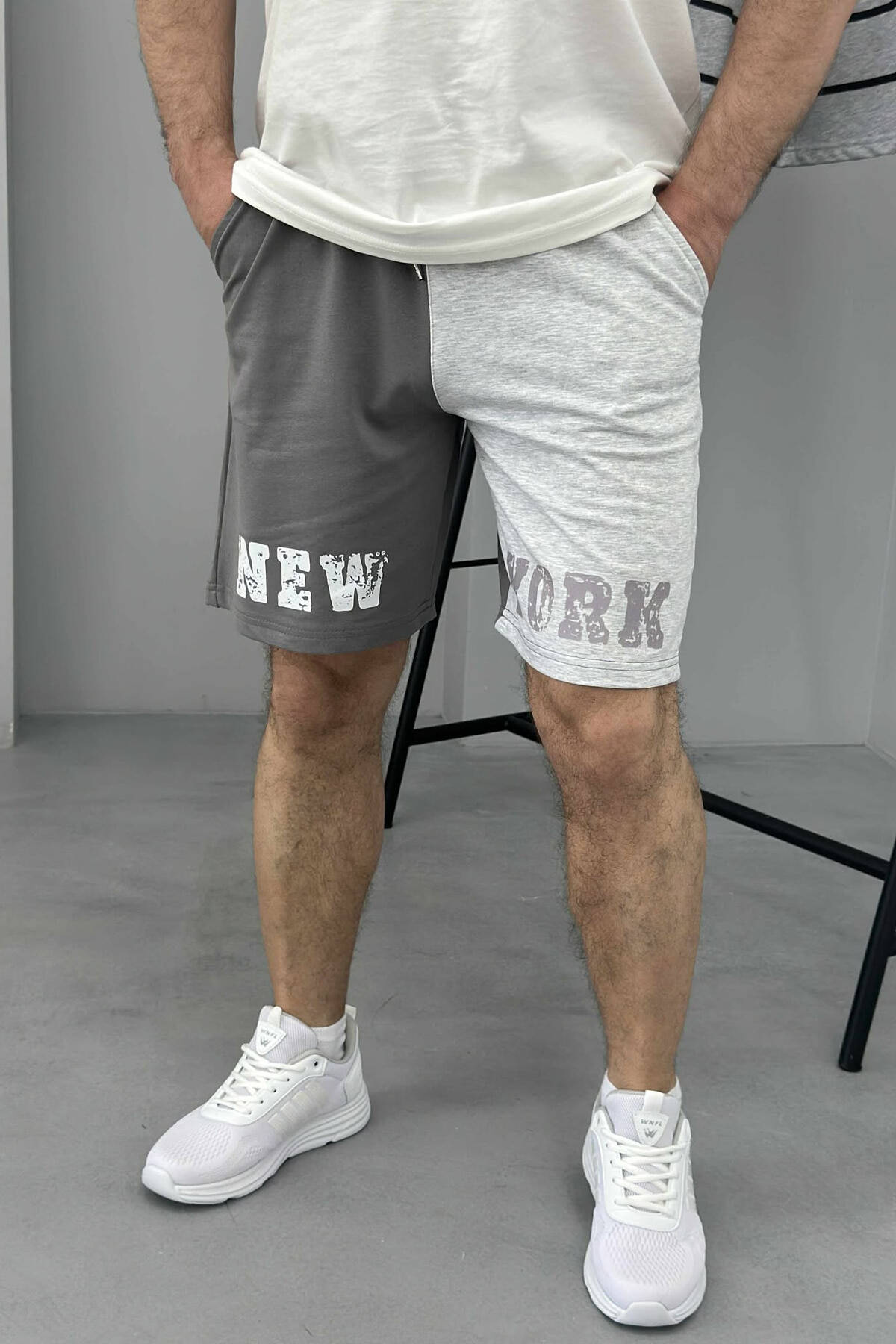 NEW YORK WRITTING MEN SHORT SWEATPANTS DARK GREY/GEE