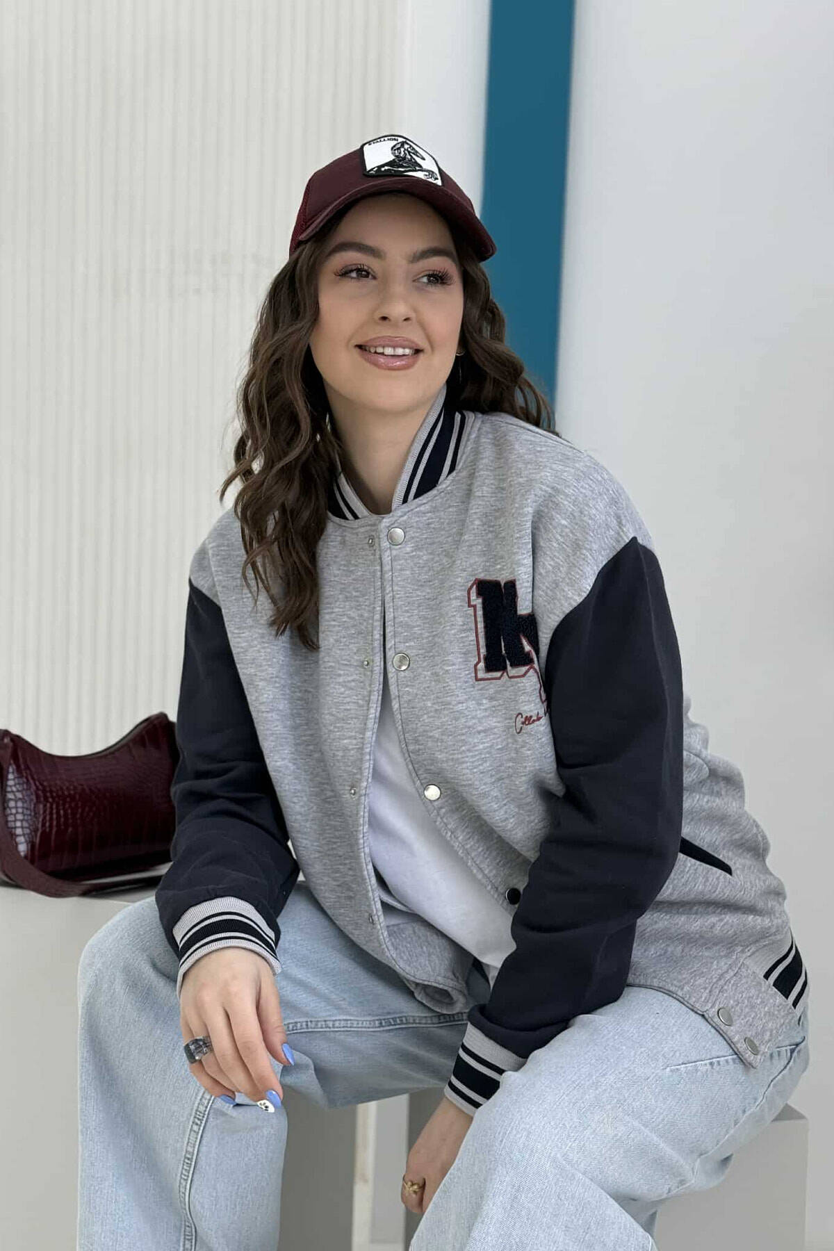 NY LOGO SIMPLE FLUFFY BOMBER WOMEN JACKET GREY/GRI