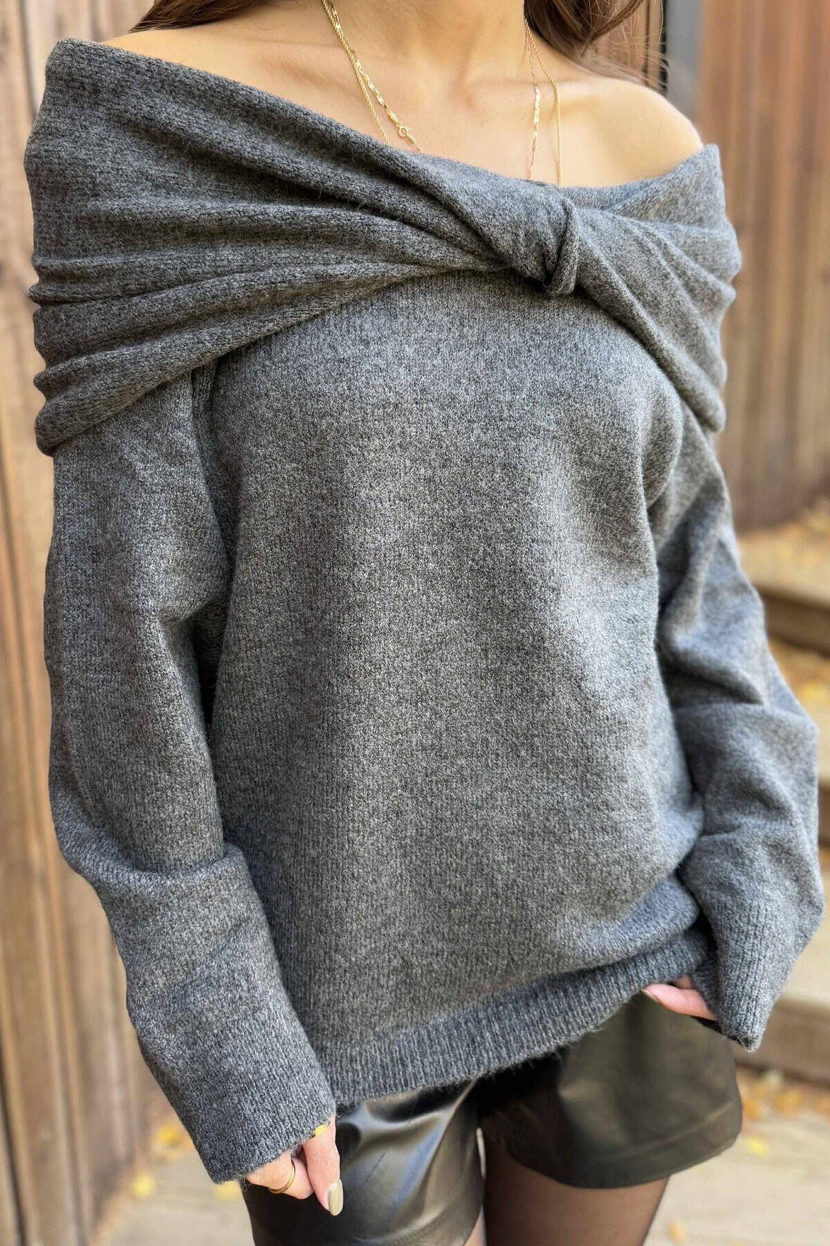 SCARF DETAIL ONE COLOR WOMEN SWEATER GREY/GRI