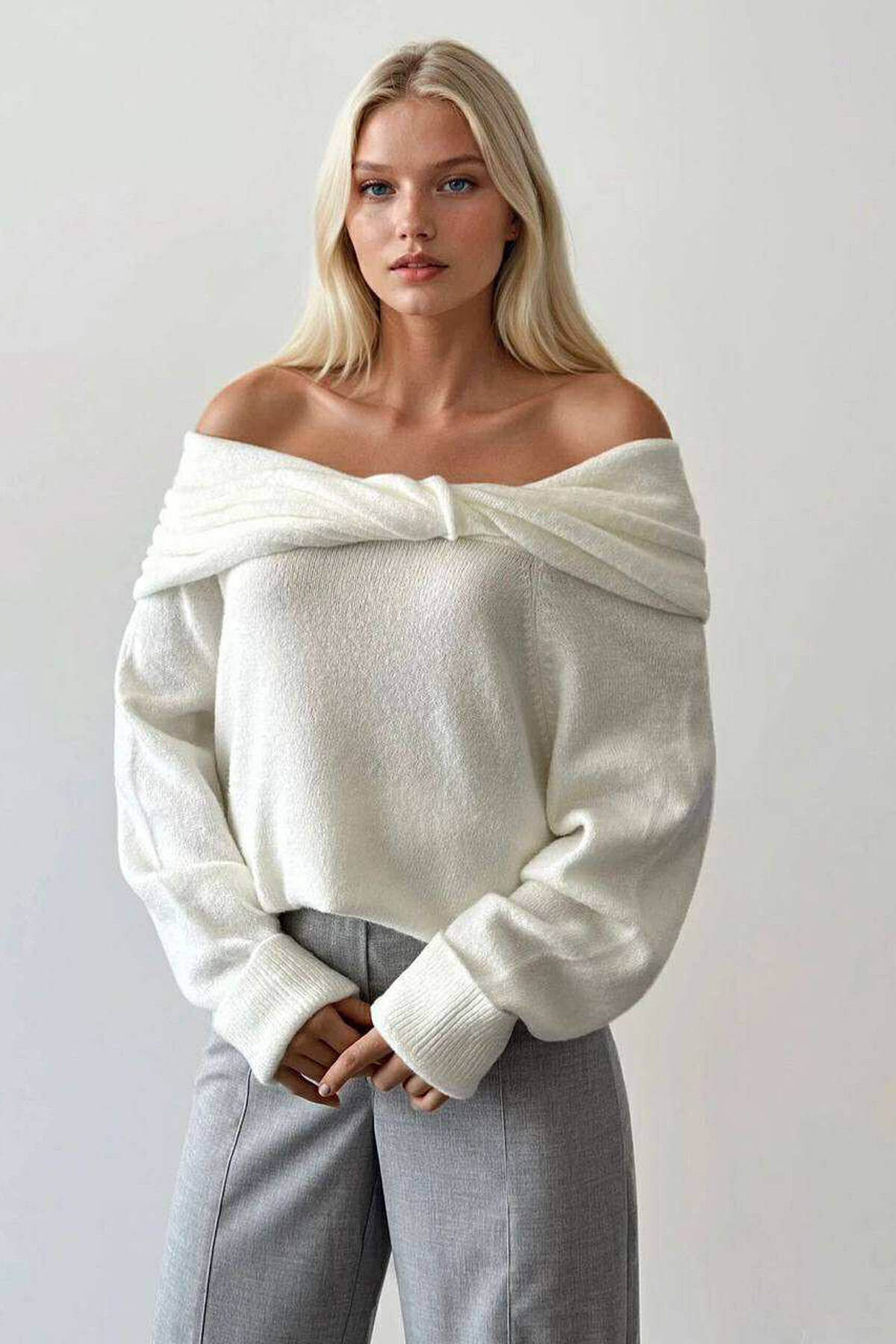 OFF SHOULDERS ONE COLOR WOMEN CARDIGAN WHITE-E BARDHE