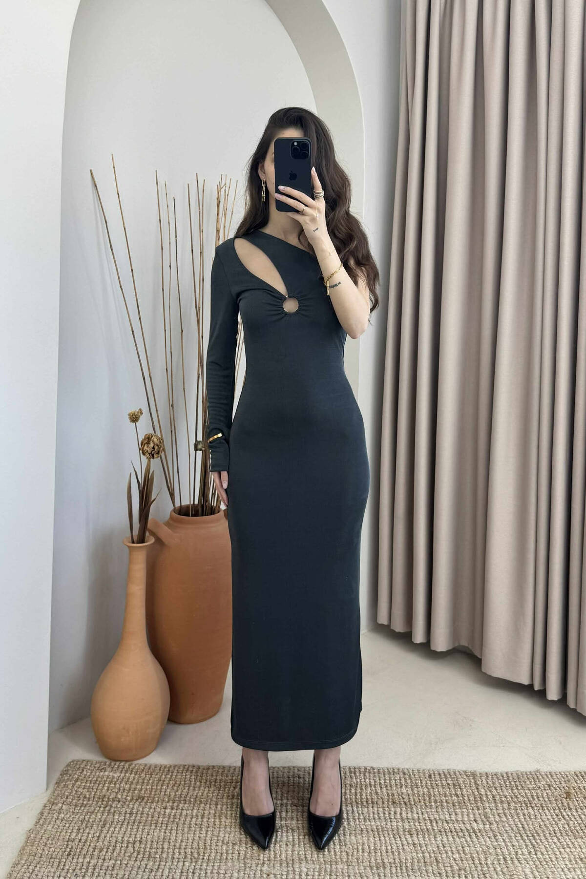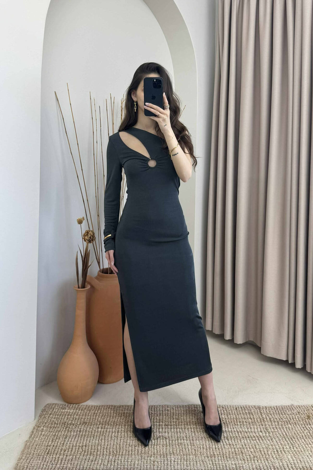 ONE ARM LONG ELASTIC WOMEN DRESS DARK GREY/GEE
