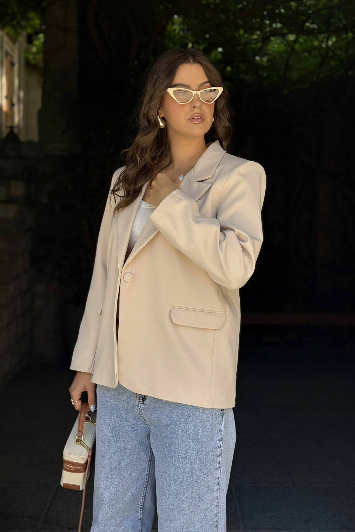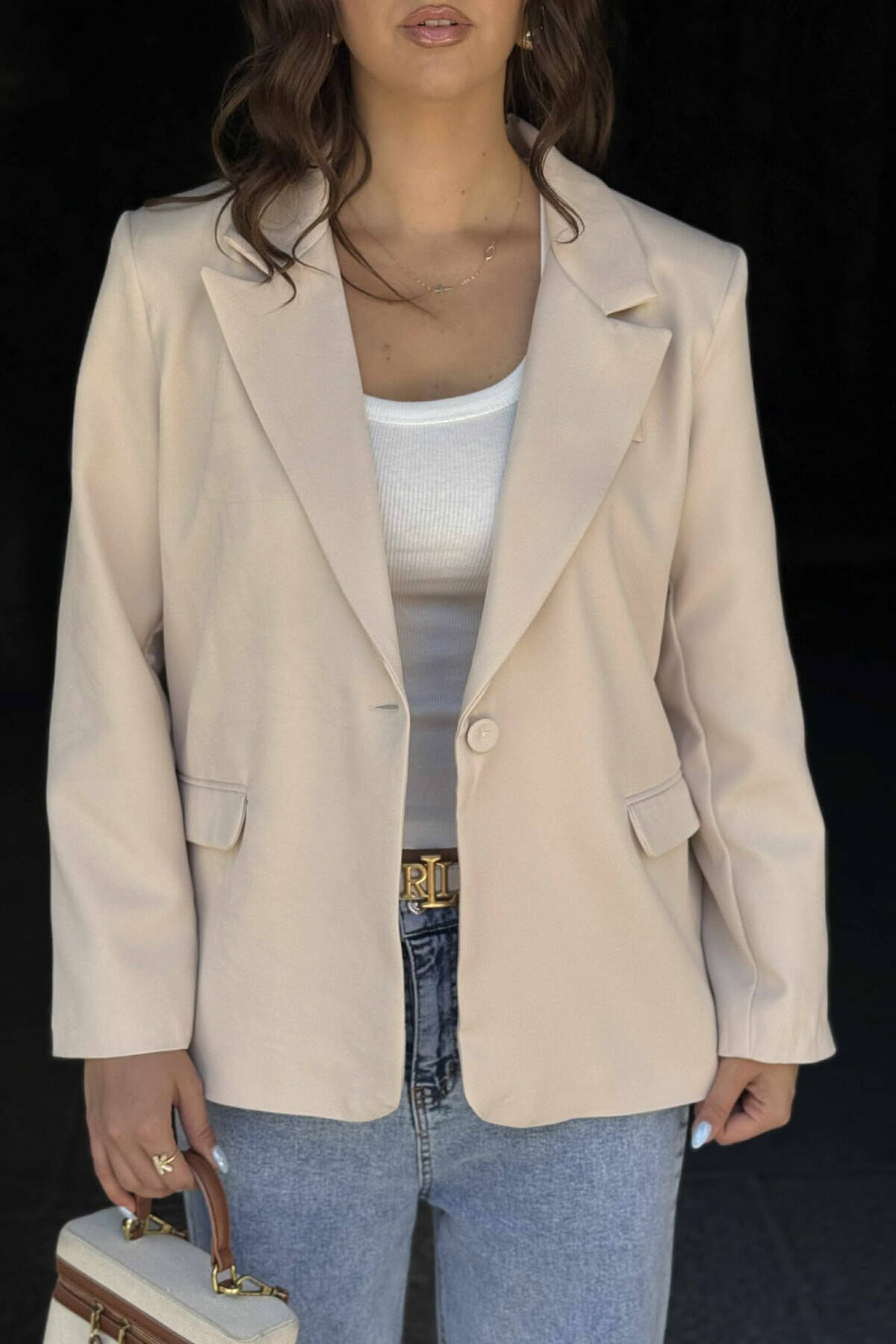 XHAKETË E THJESHTË NJËNGJYRËSHE ME NJË BUTON PËR FEMRA NË NGJYRËN KREM