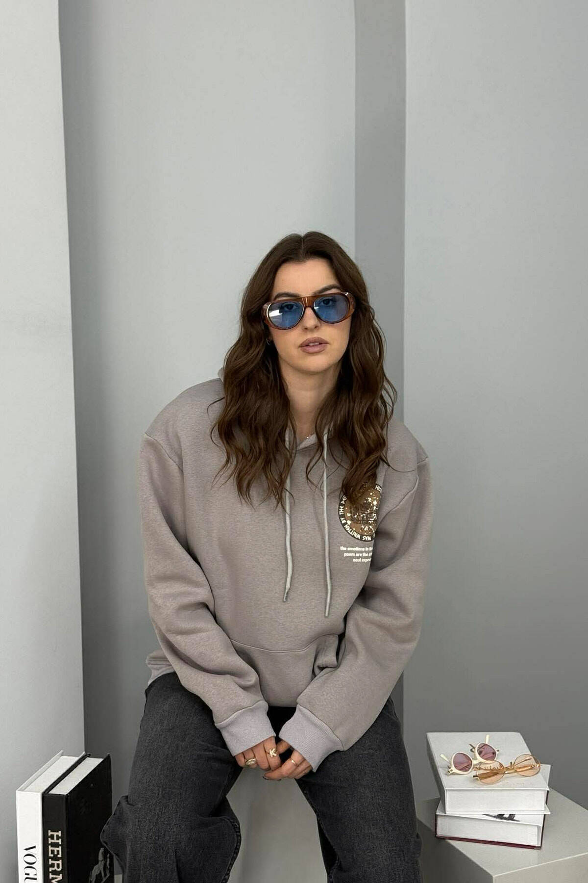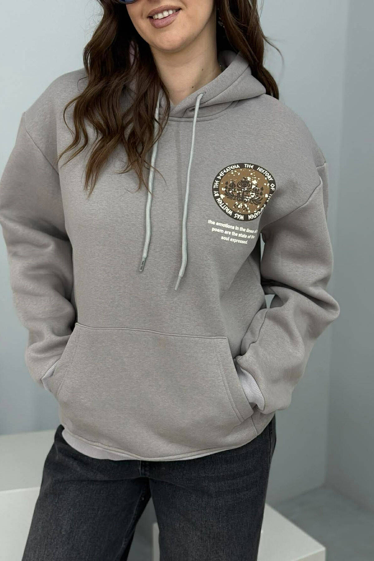 ONE COLOR FLUFFY WOMAN HOODIE LIGHT GREY/GZ