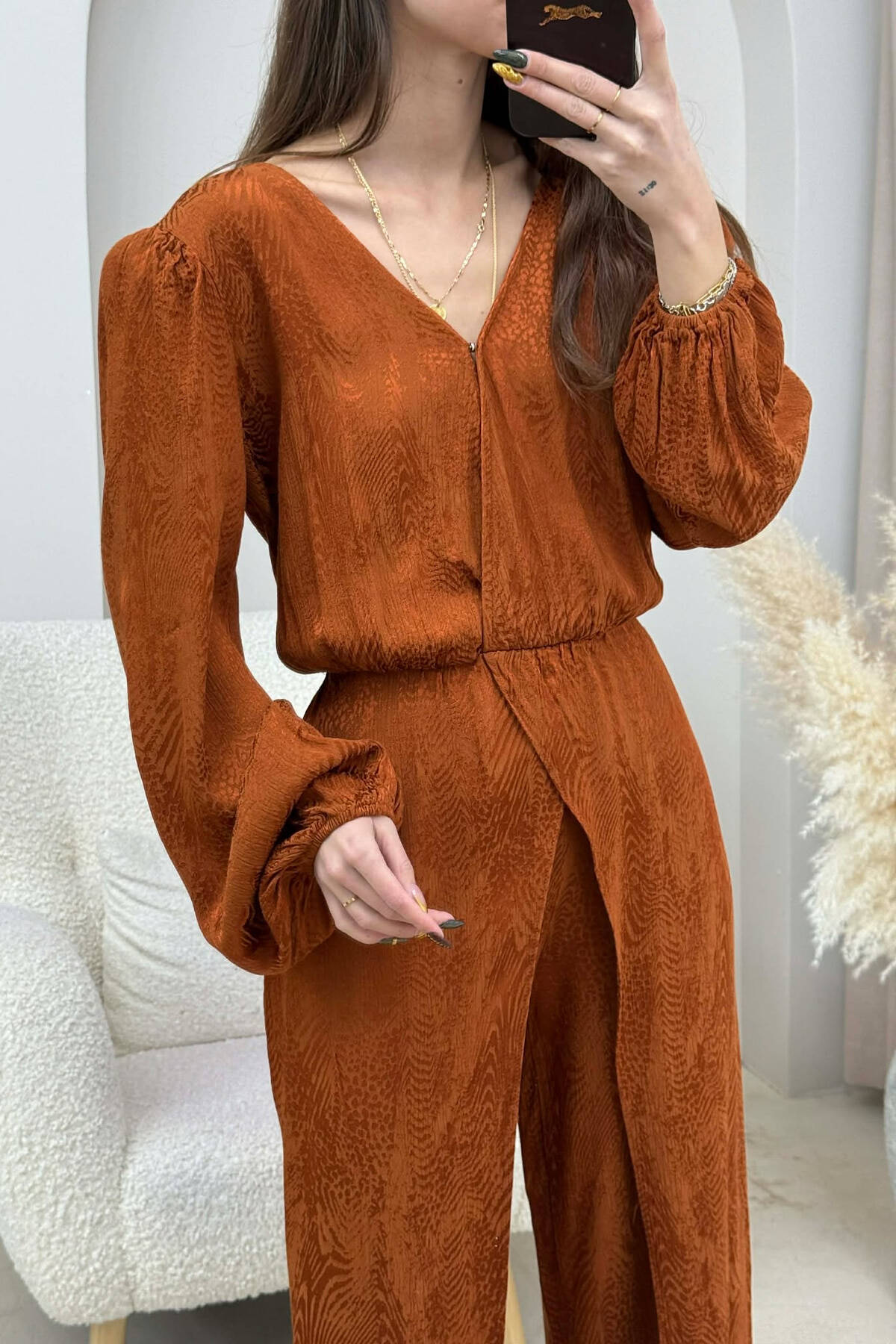 V NECK ONE COLOR WOMEN JUMPSUIT BROWN/KAFE