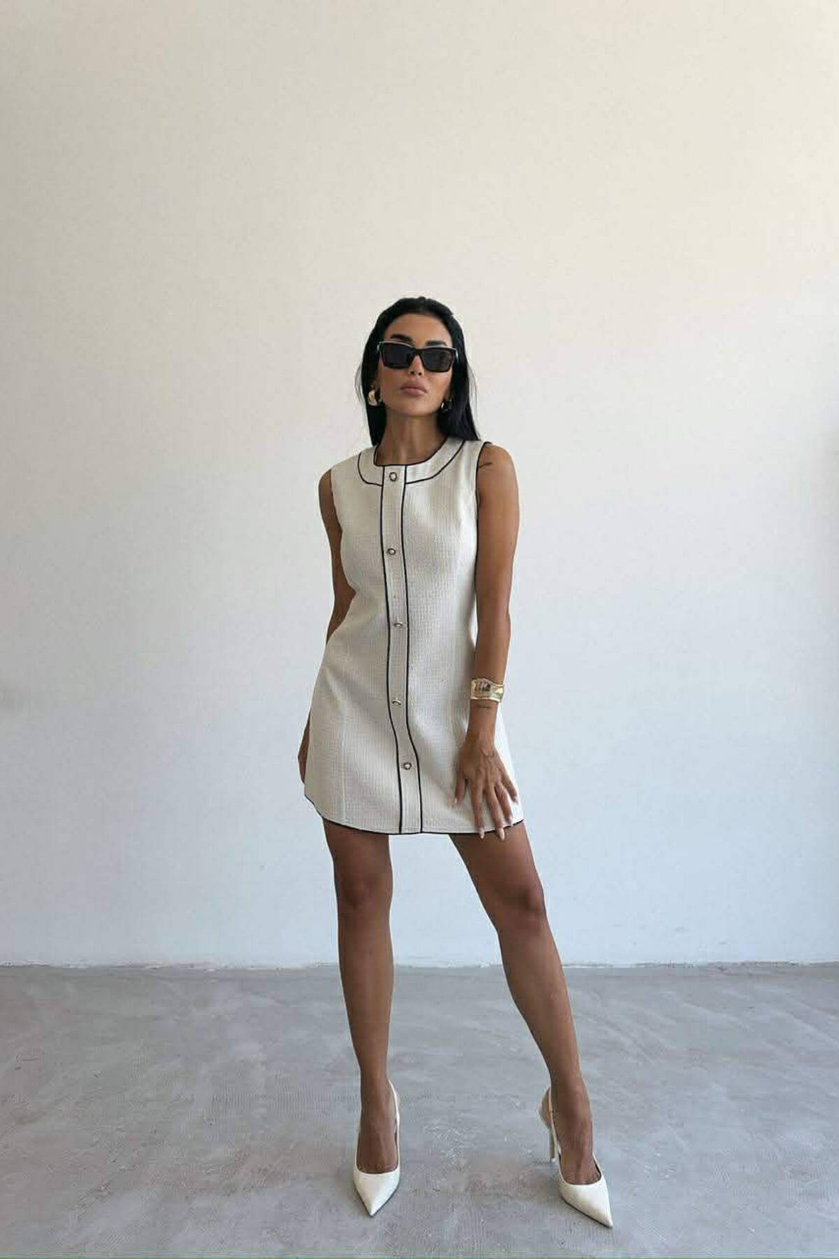 ONE COLOR BACK ZIPPER SLEEVELESS WOMEN DRESS CREAM/KREM