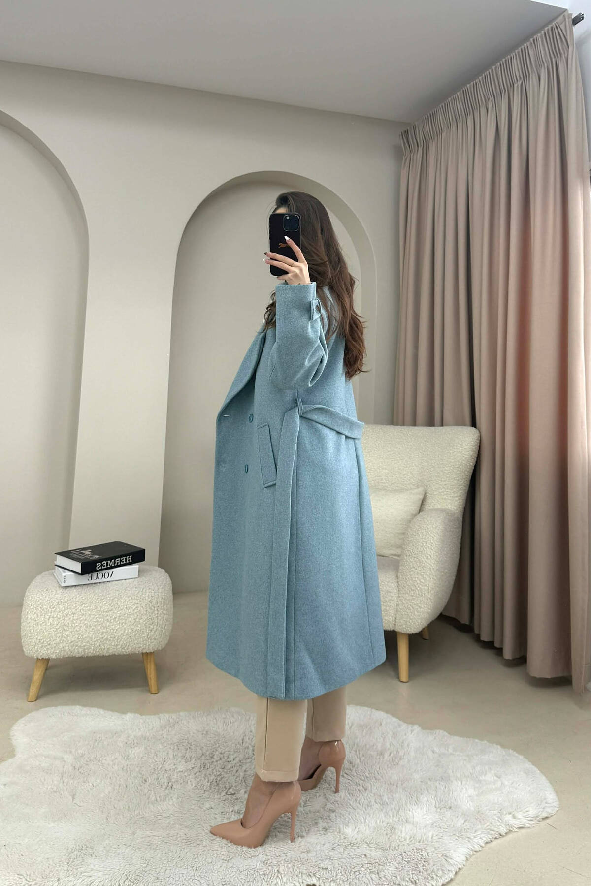 ONE COLOR BELT DETAIL LONG WOMEN TRENCH COAT LIGHTBLUE/BZ