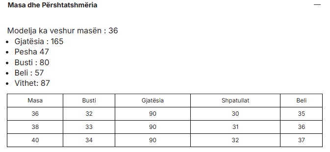 Size chart