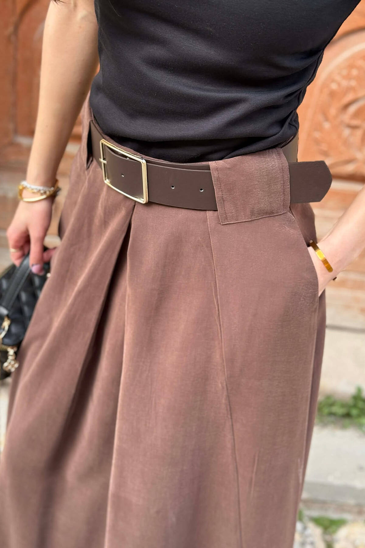 ONE COLOR BELT DETAIL WOMAN SKIRT BROWN/KAFE