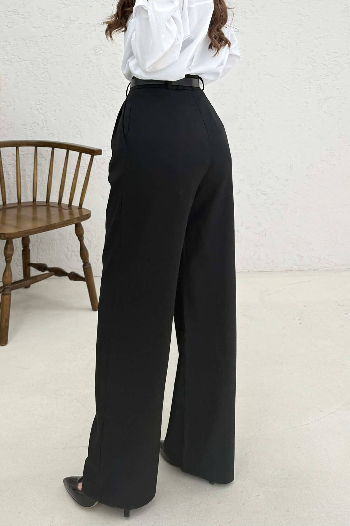 LACING DETAIL WIDE LEG WOMAN TROUSERS BLACK/ E ZEZE