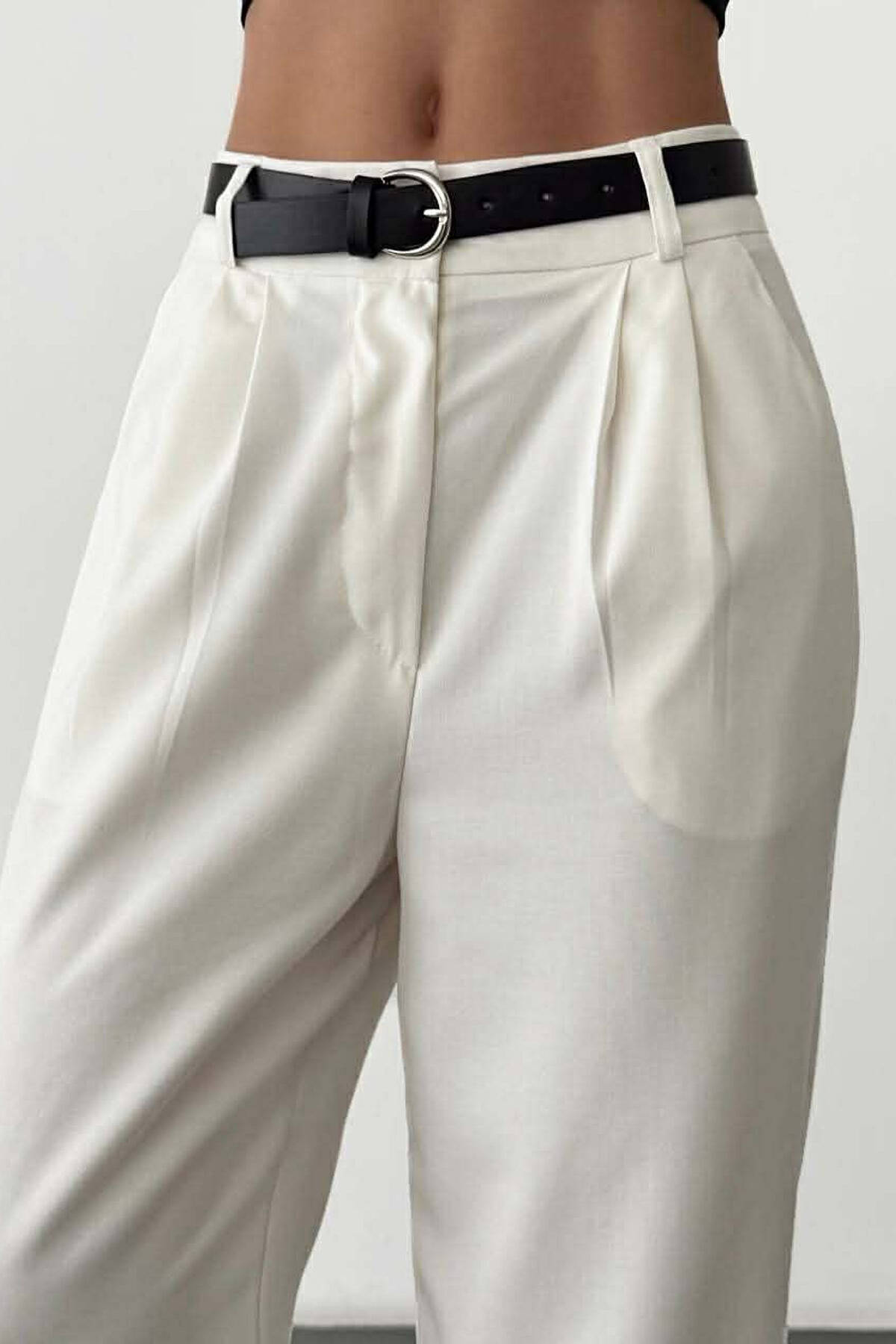 ONE COLOR BELT DETAIL WOMAN TROUSERS WHITE-E BARDHE