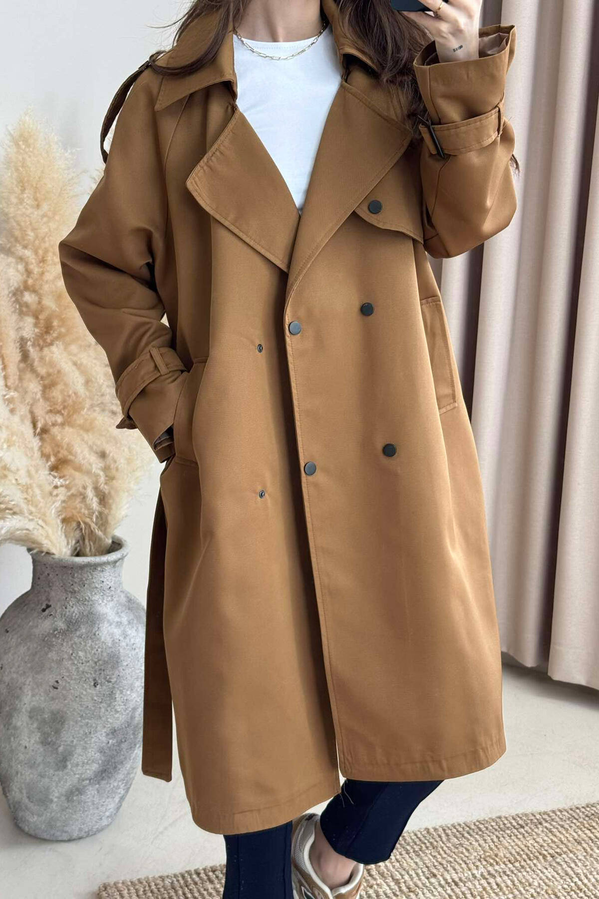 ONE COLOR BELT DETAIL WOMEN JACKET BROWN/KAFE