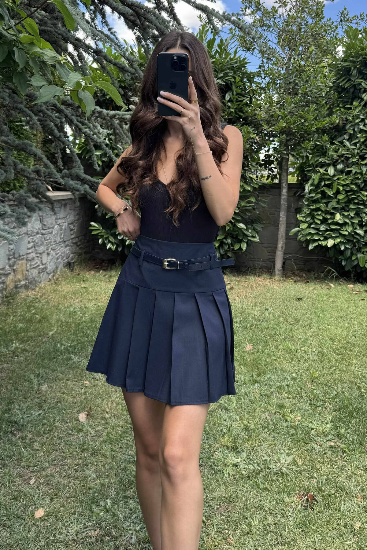 ONE COLOR BELT DETAIL WOMEN SKIRT DARK BLUE/BEE