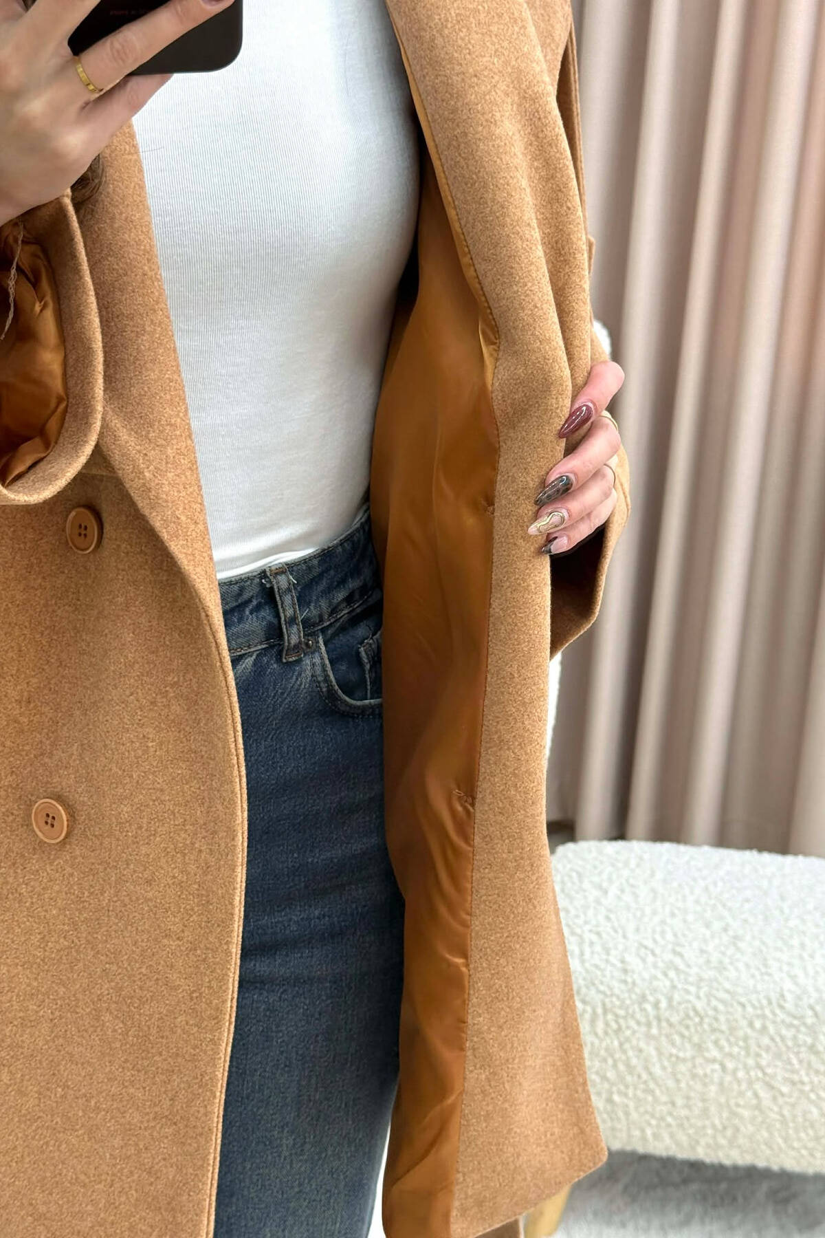 GOLD BUTTONS DETAIL SIMPLE WOMEN COAT CREAM/KREM