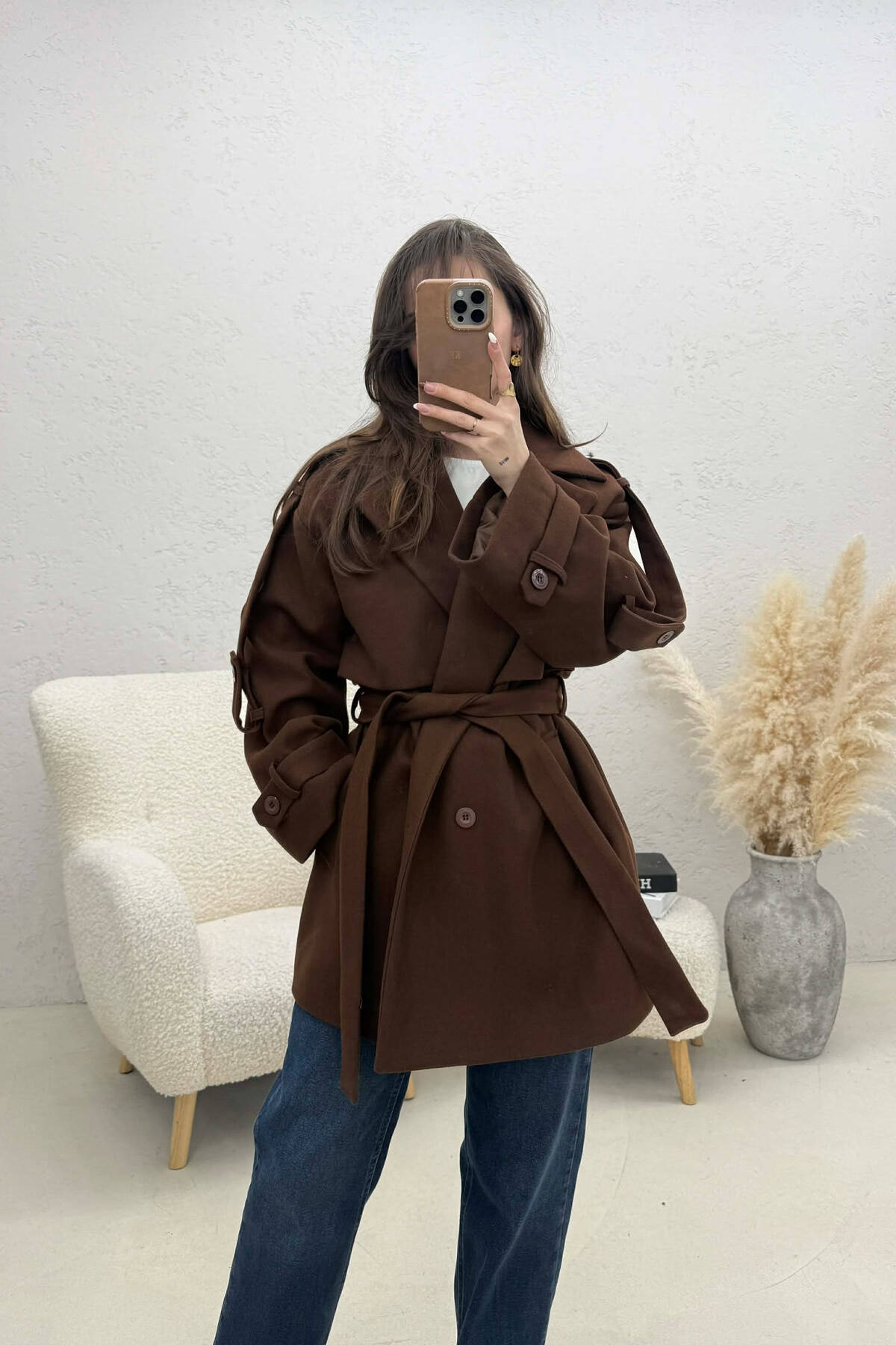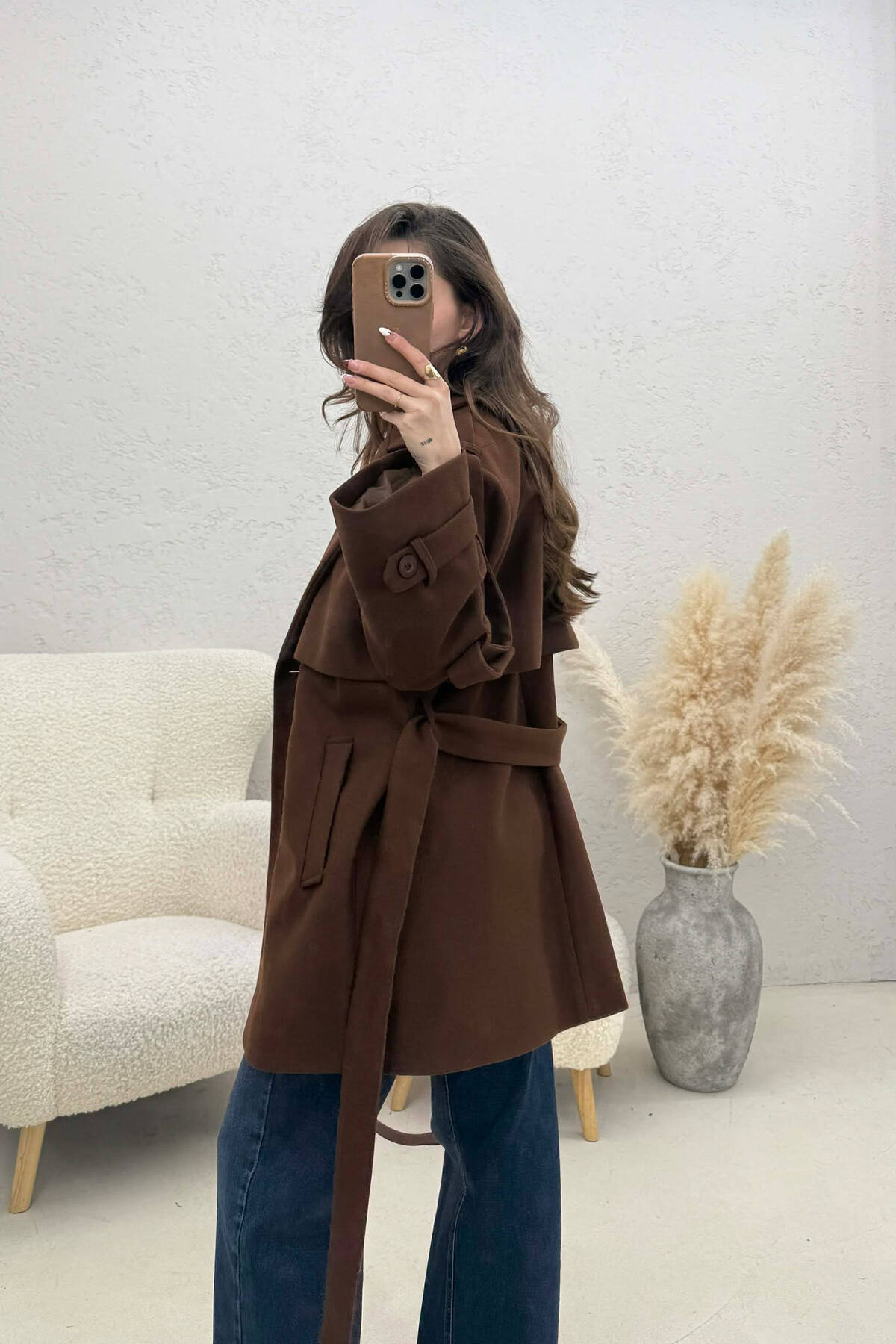 ONE COLOR BELT DETAIL WOMEN TRENCH COAT CHOCOLATE/COKOLLATE