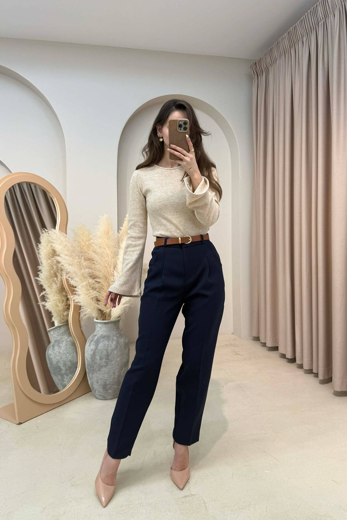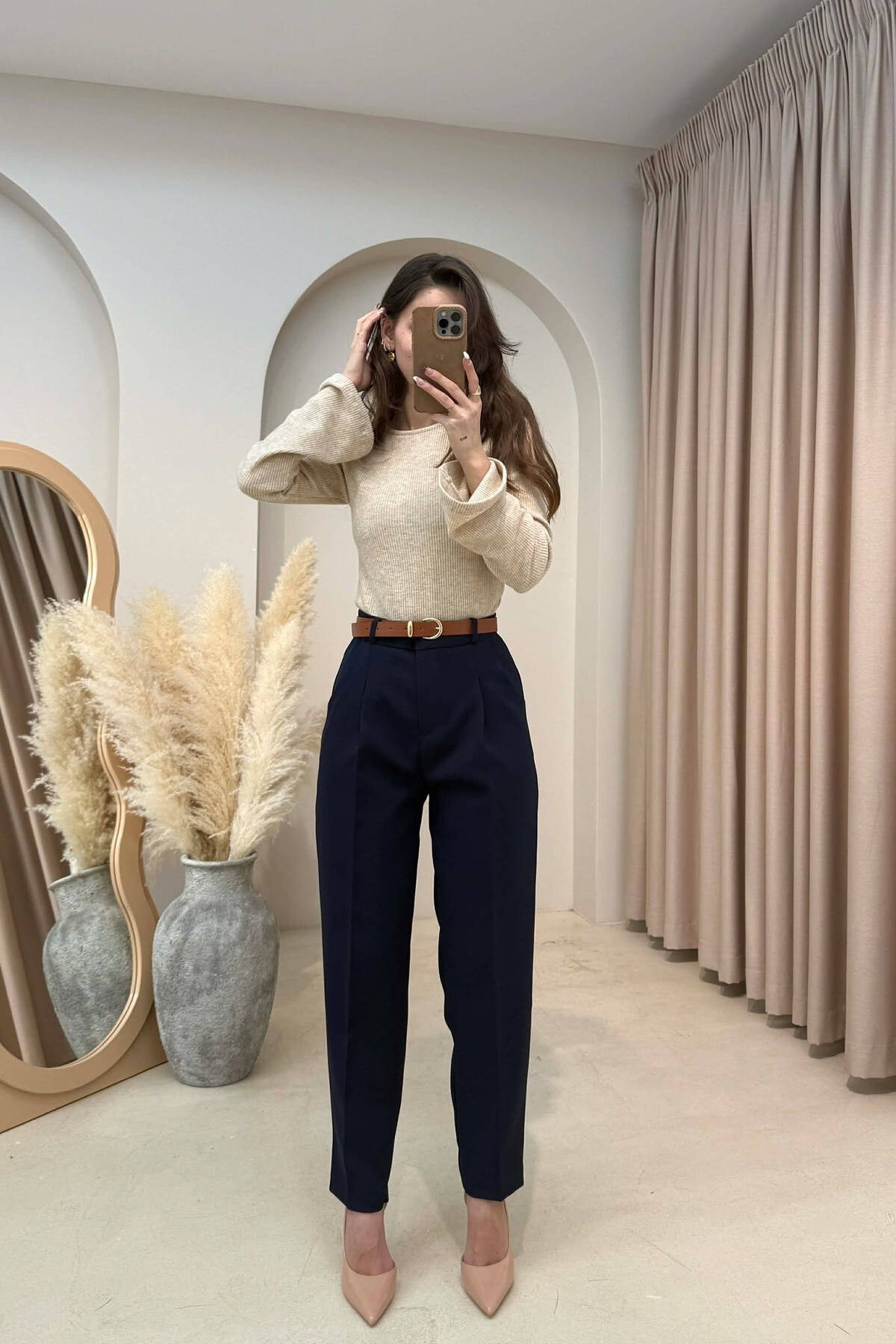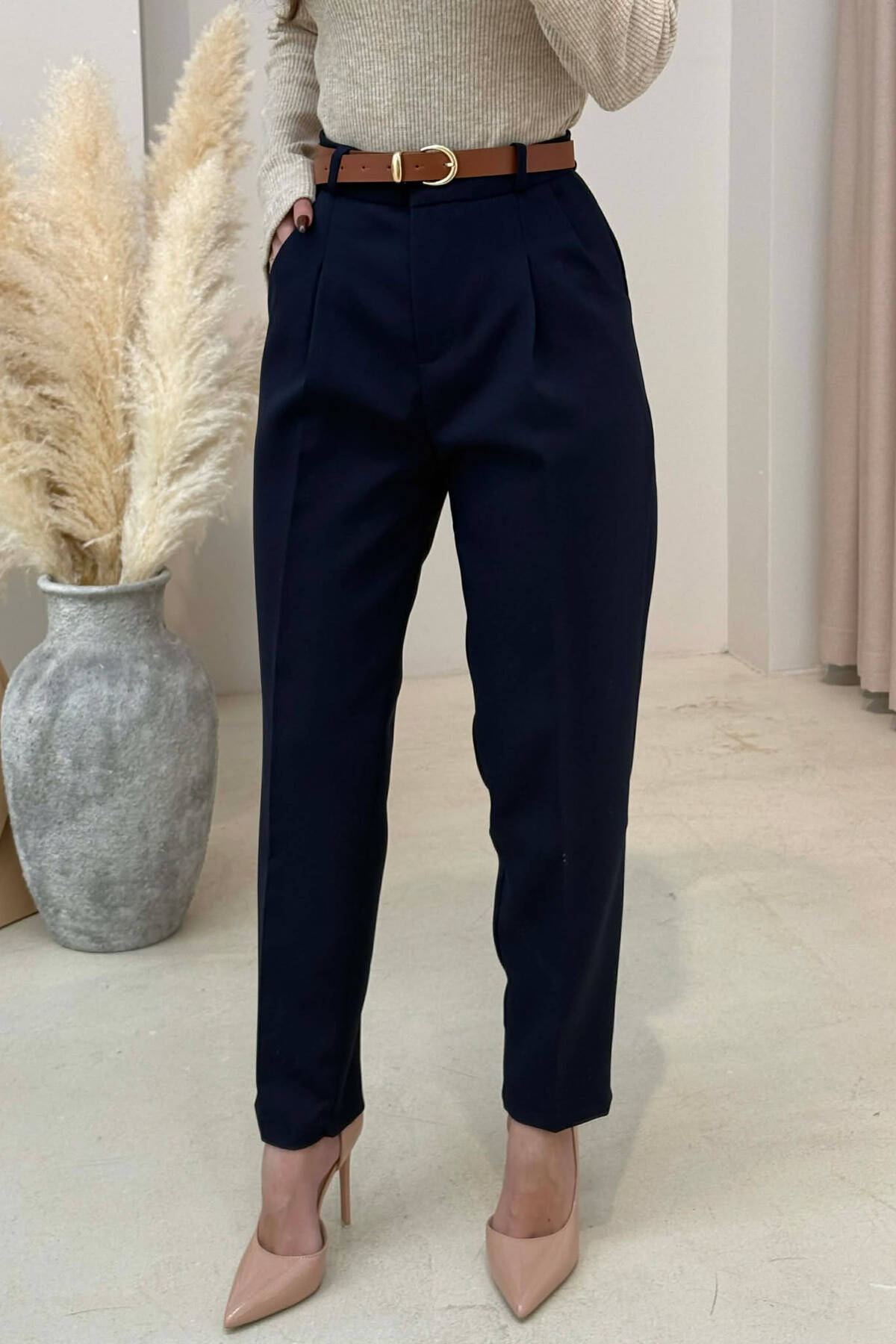 PANTALLONA NJE NGJYRESHE ME BEL GJYSEM ELASTIK PER FEMRA NE NGJYRE BLU MESNATE
