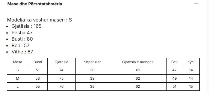Size chart