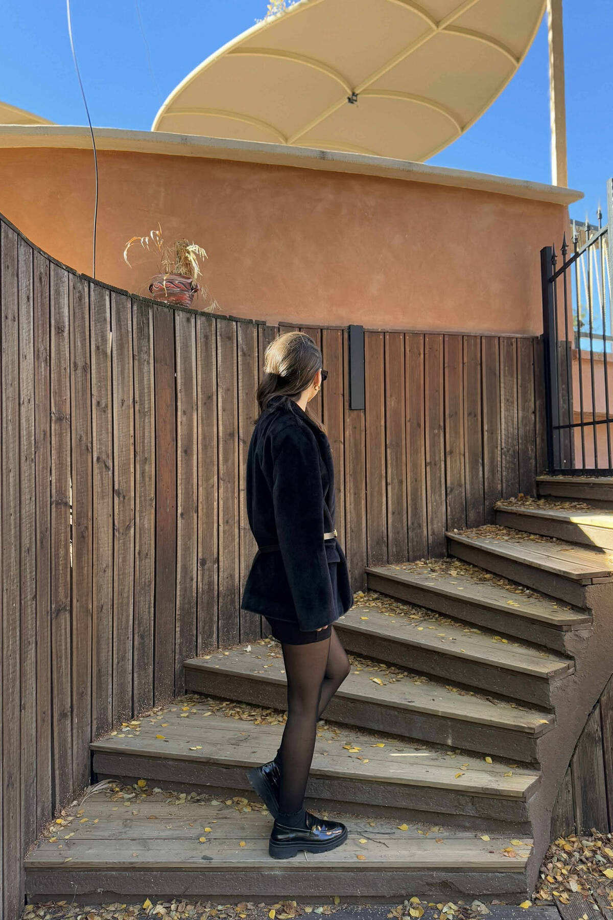 ONE COLOR BELTED FAUX WOMEN COAT BLACK/ E ZEZE