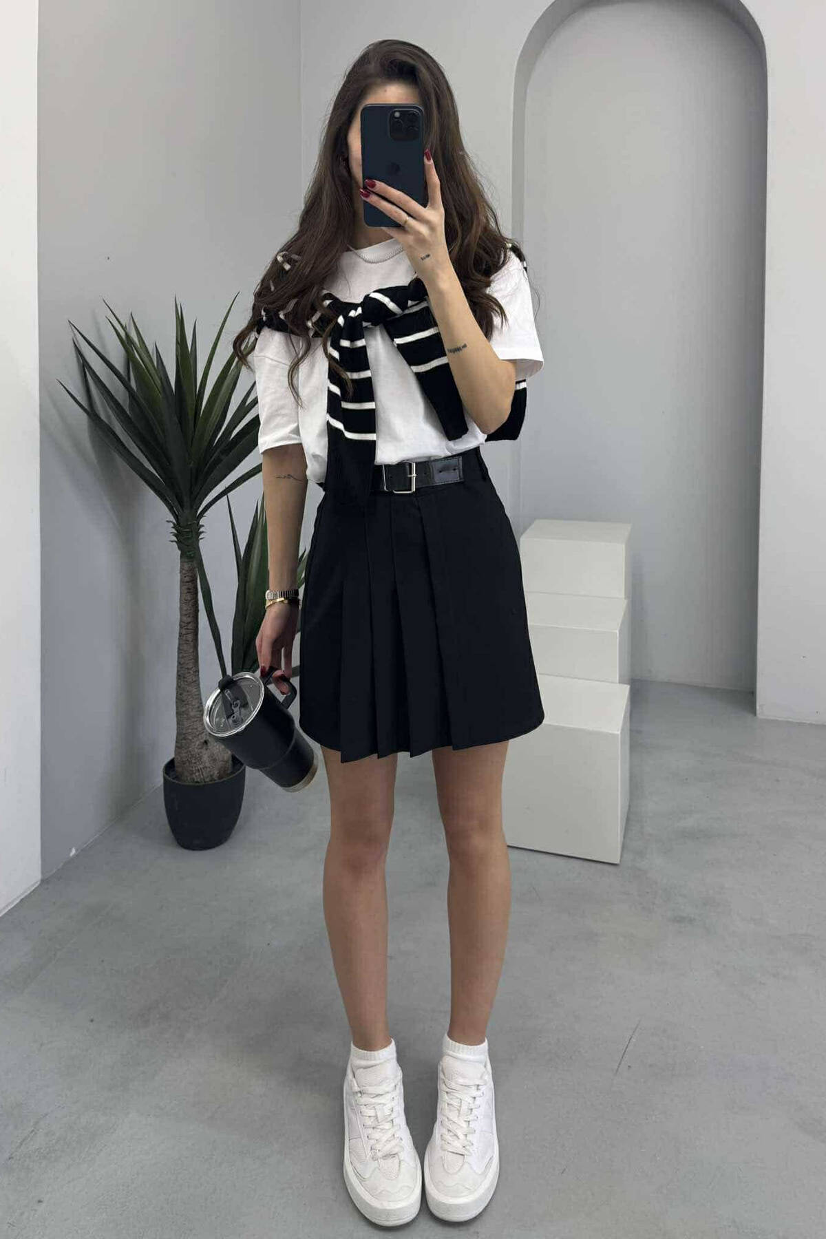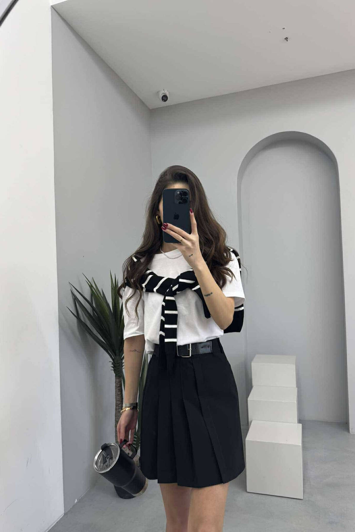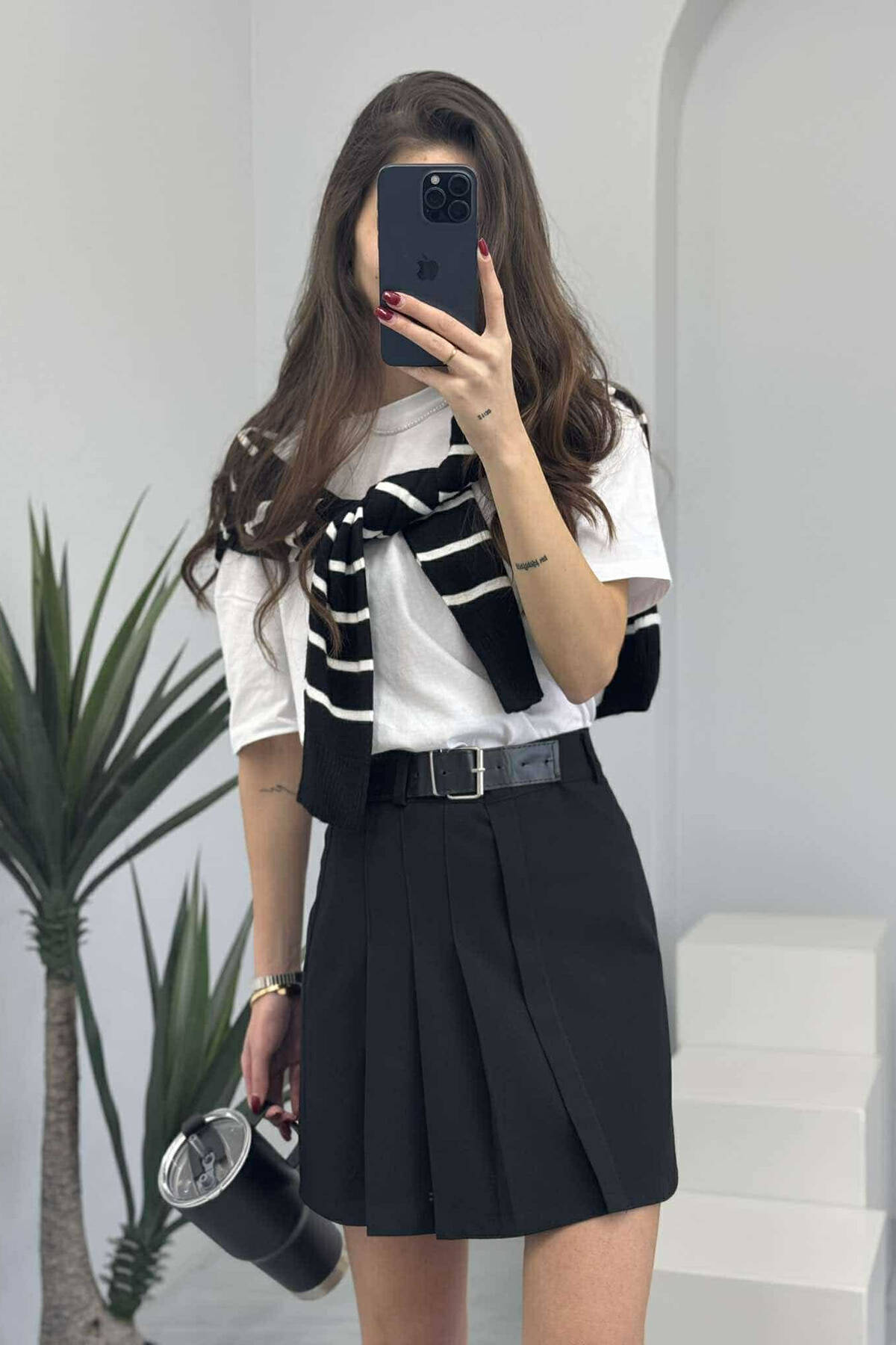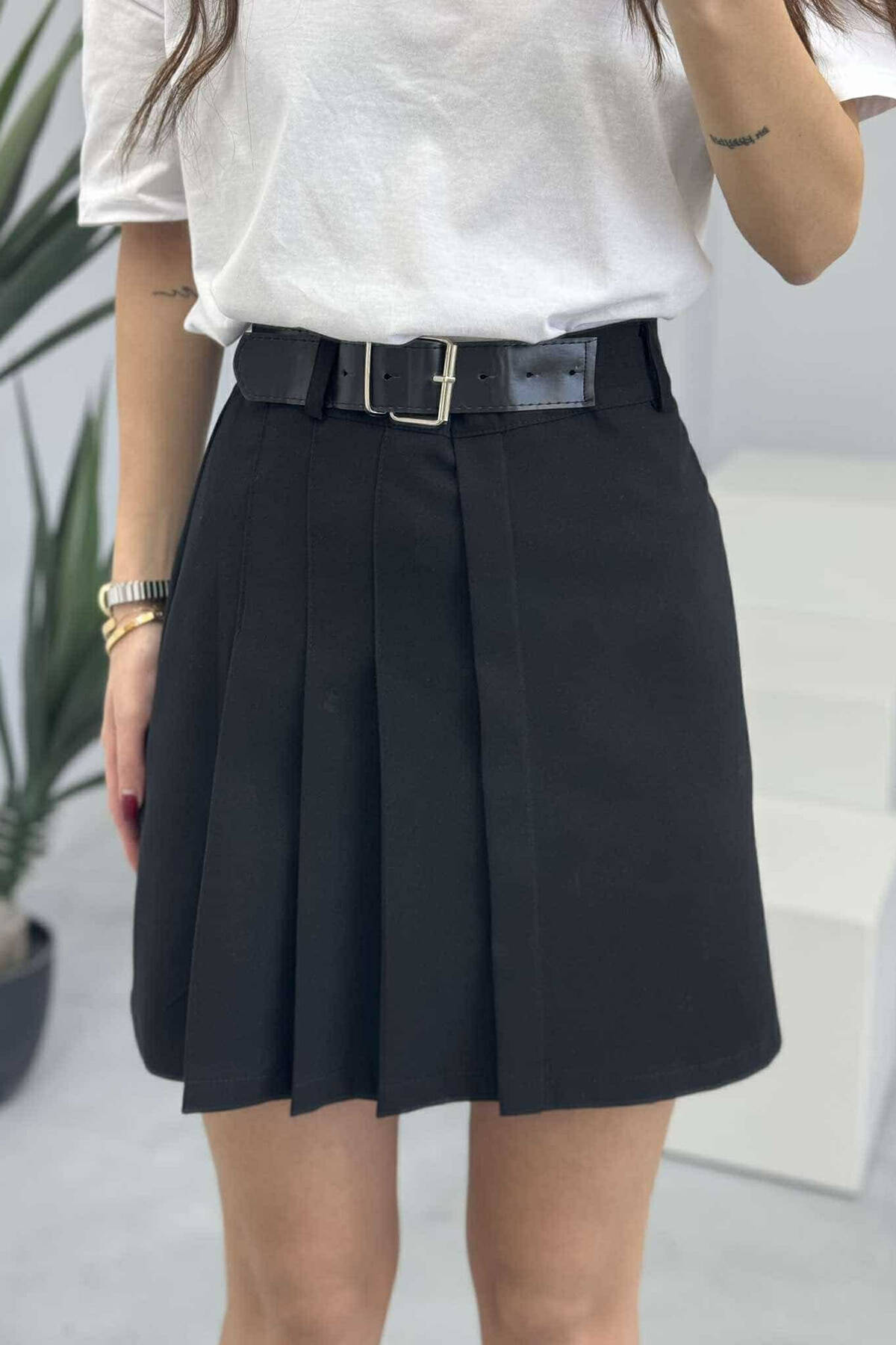 ONE COLOR BELTED WOMEN SKIRT BLACK/ E ZEZE