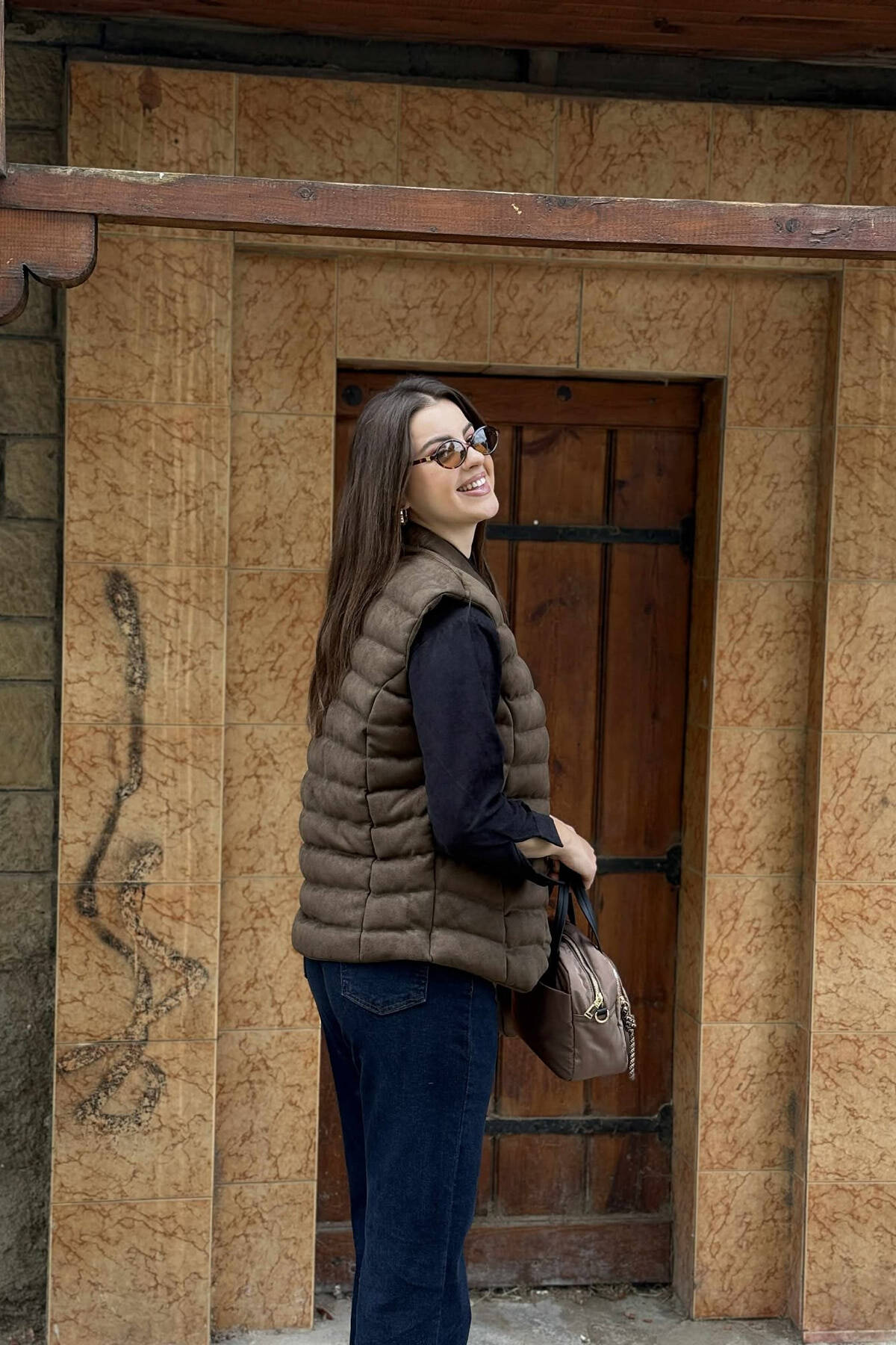 ONE COLOR TEDDY ZIPPER WOMEN VEST BROWN/KAFE