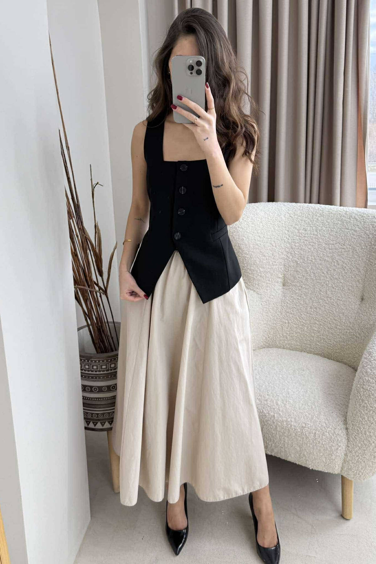 ONE COLOR BUTTONED WOMAN VEST BEIGE/BEZHE