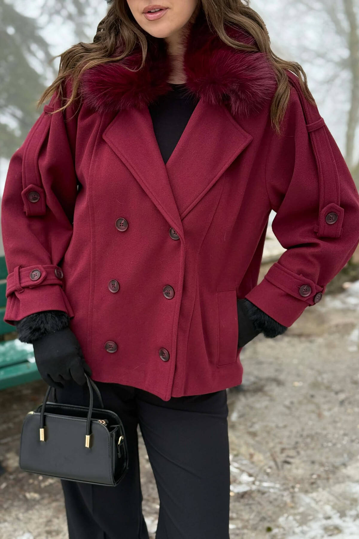 PALLTO E GJATE PELLUSHI ME DETAJIN E RRIPIT PER FEMRA NE NGJYRE VISHNJE
