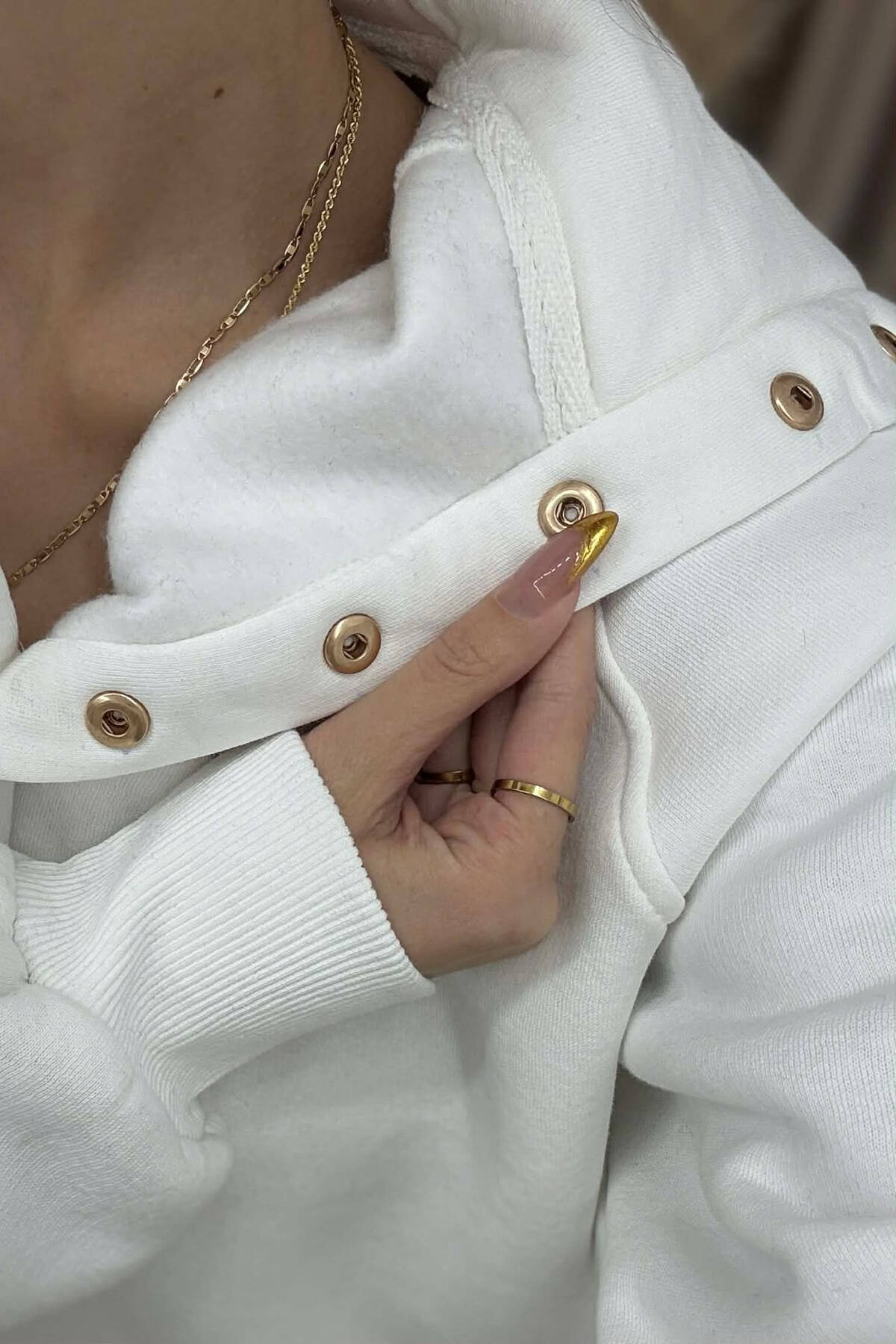 ONE COLOR BUTTONED FLUFFY WOMEN SWEATSHIRT WHITE-E BARDHE