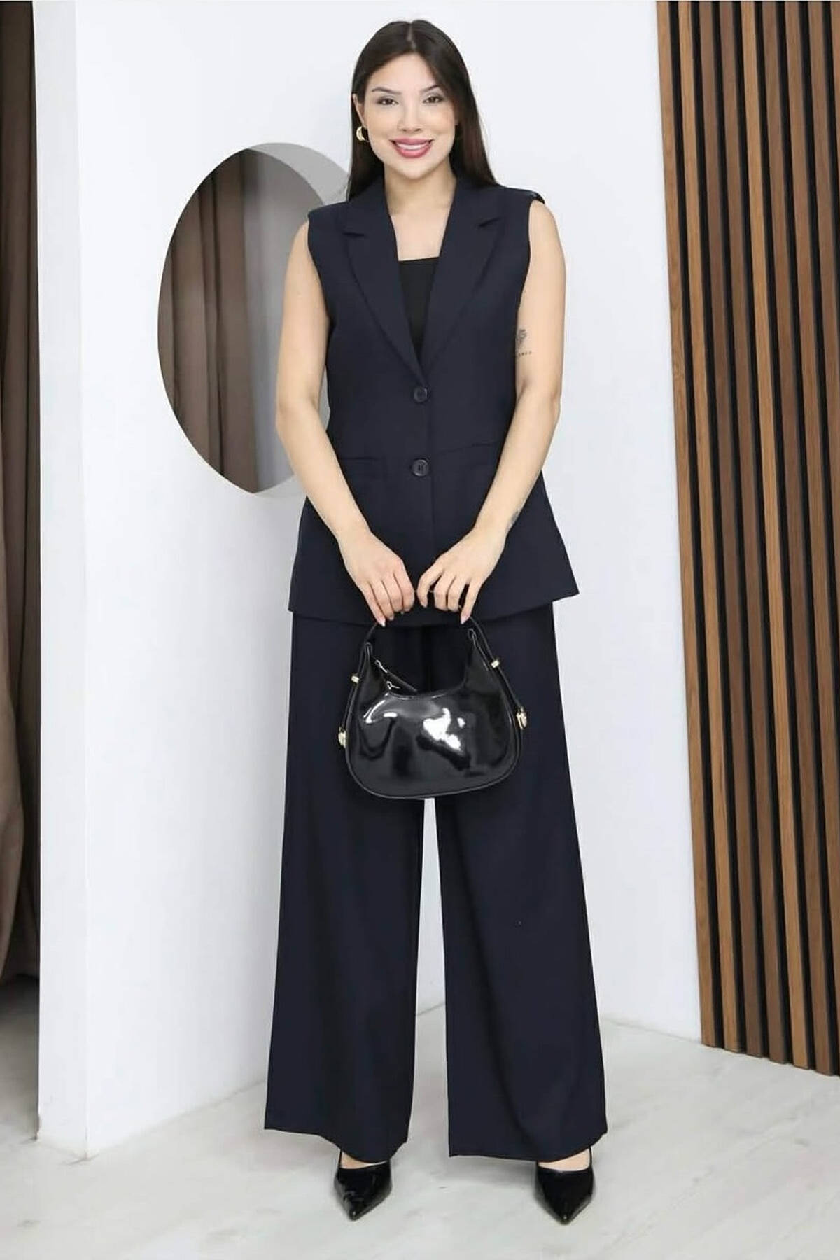 ONE COLOR BUTTONED VEST+ TROUSERS WOMAN TWO PIECE ST BLACK/ E ZEZE