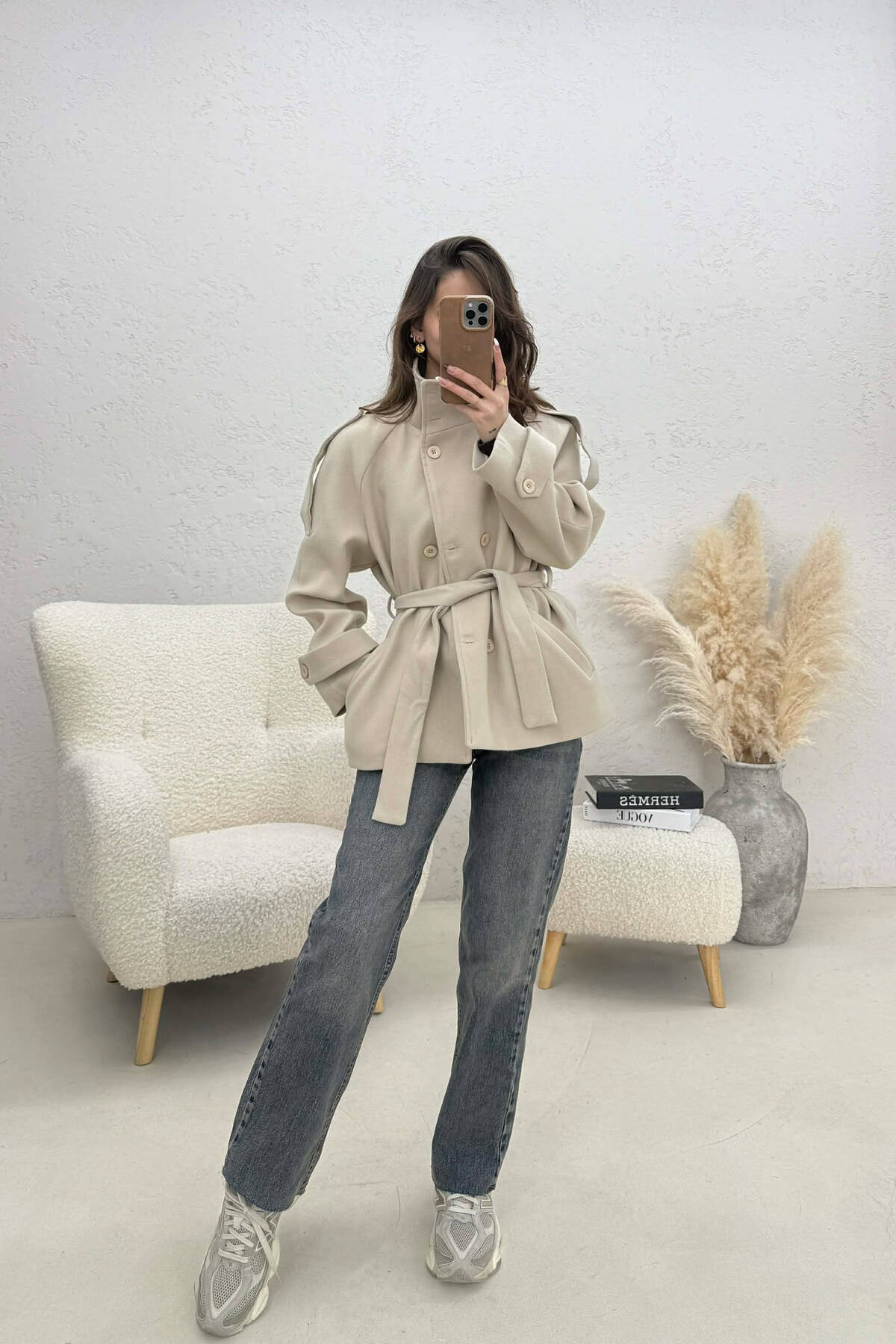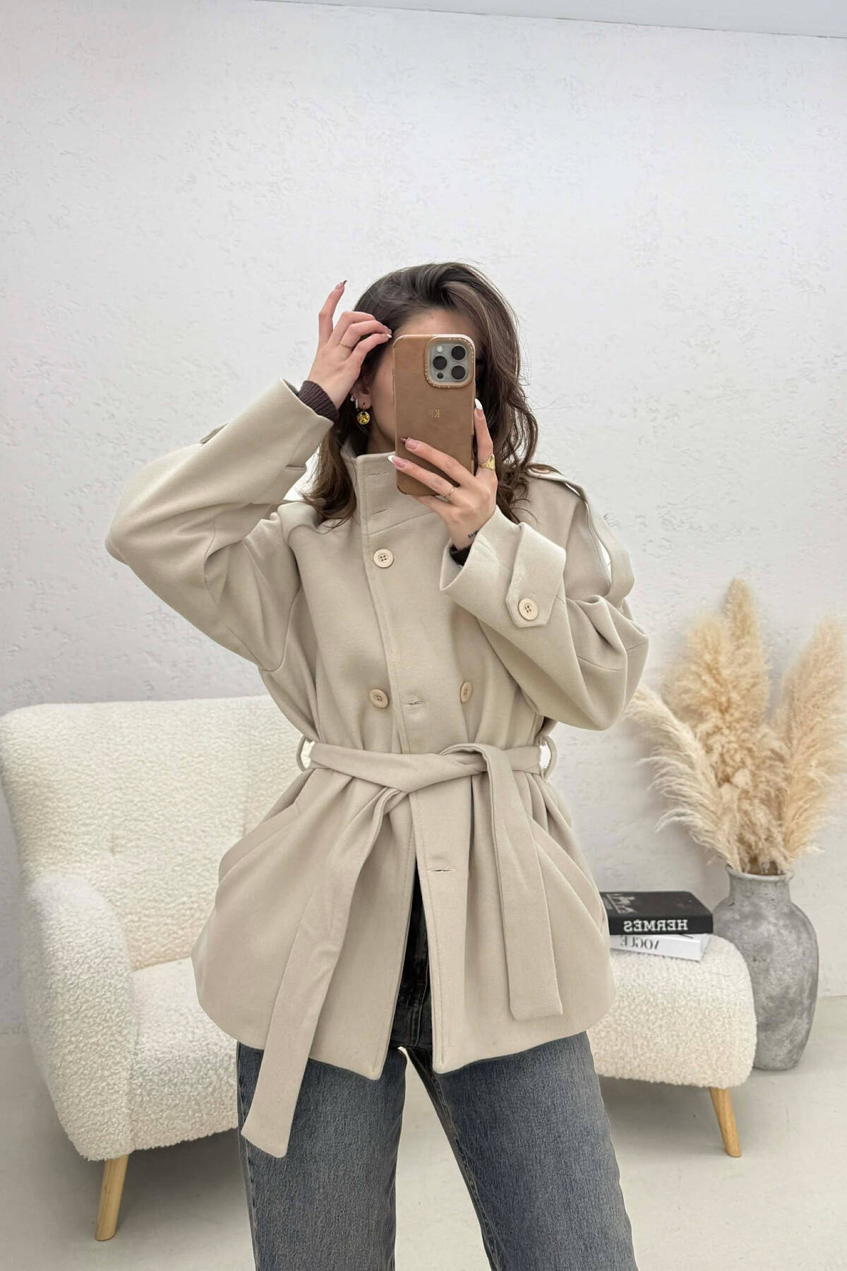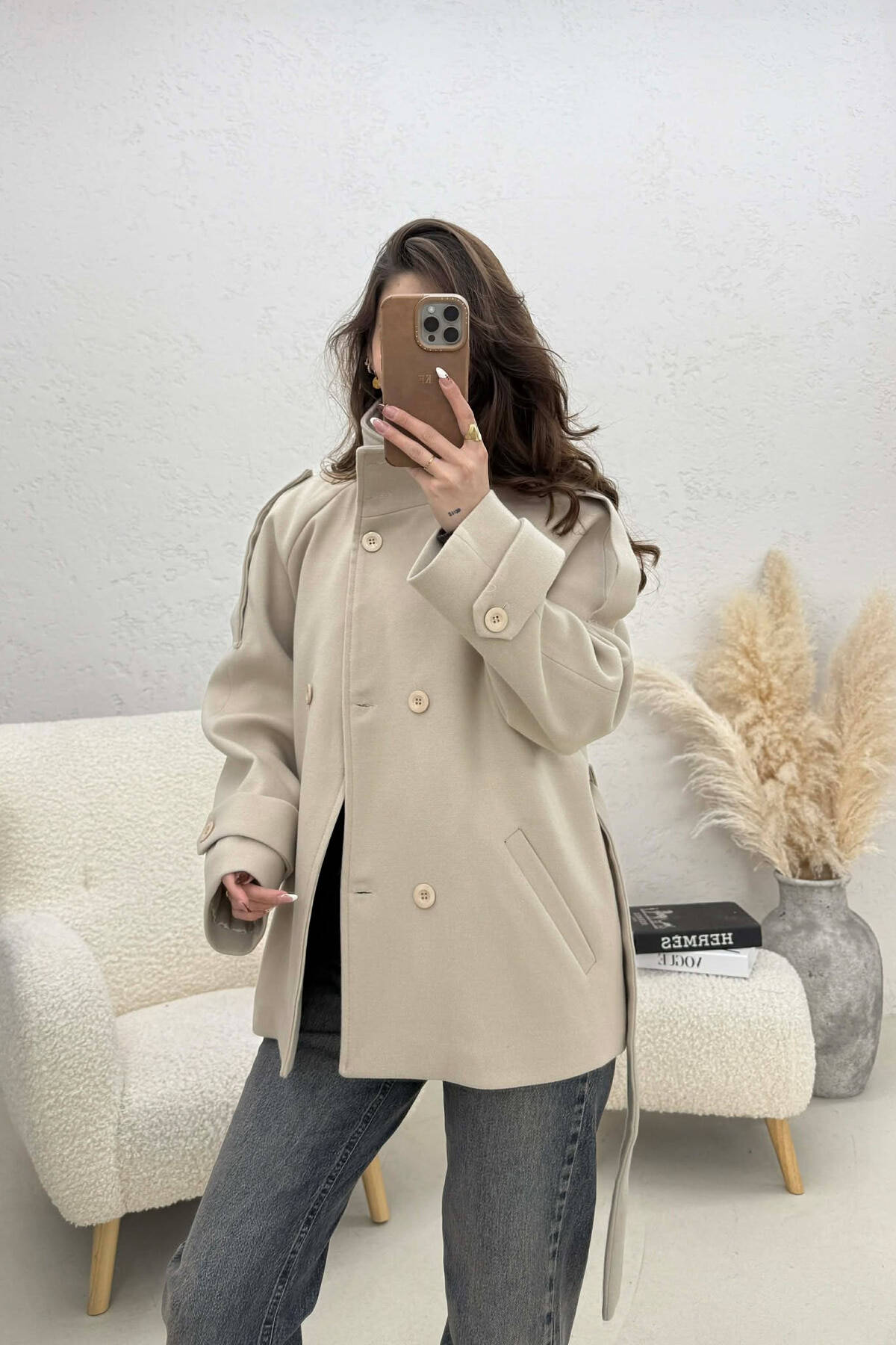 PALLTO NJE NGJYRESHE ME BUTONA DHE ME DETAJIN E RRIPIT PER FEMRA NE NGJYRE UTHULL