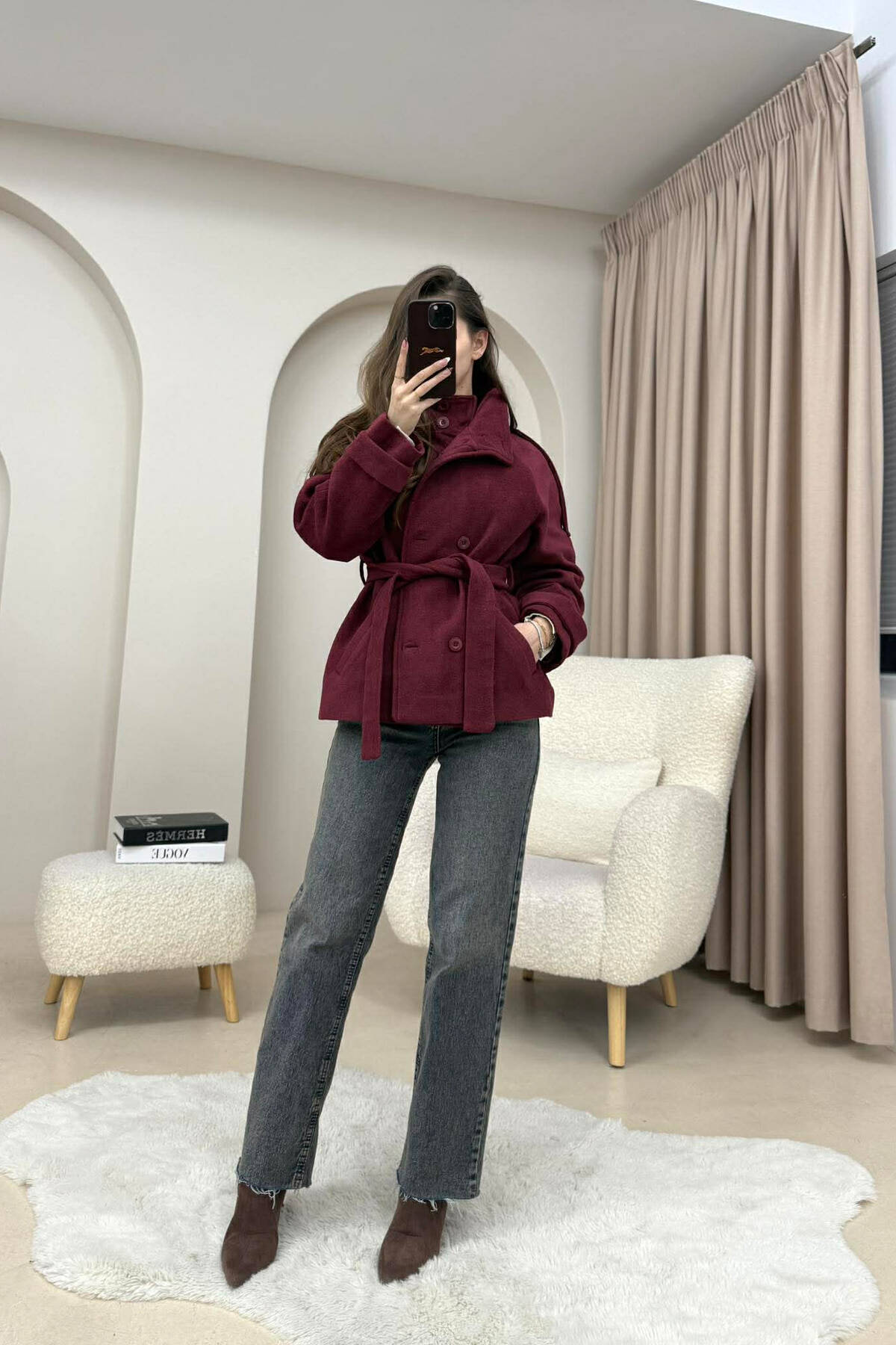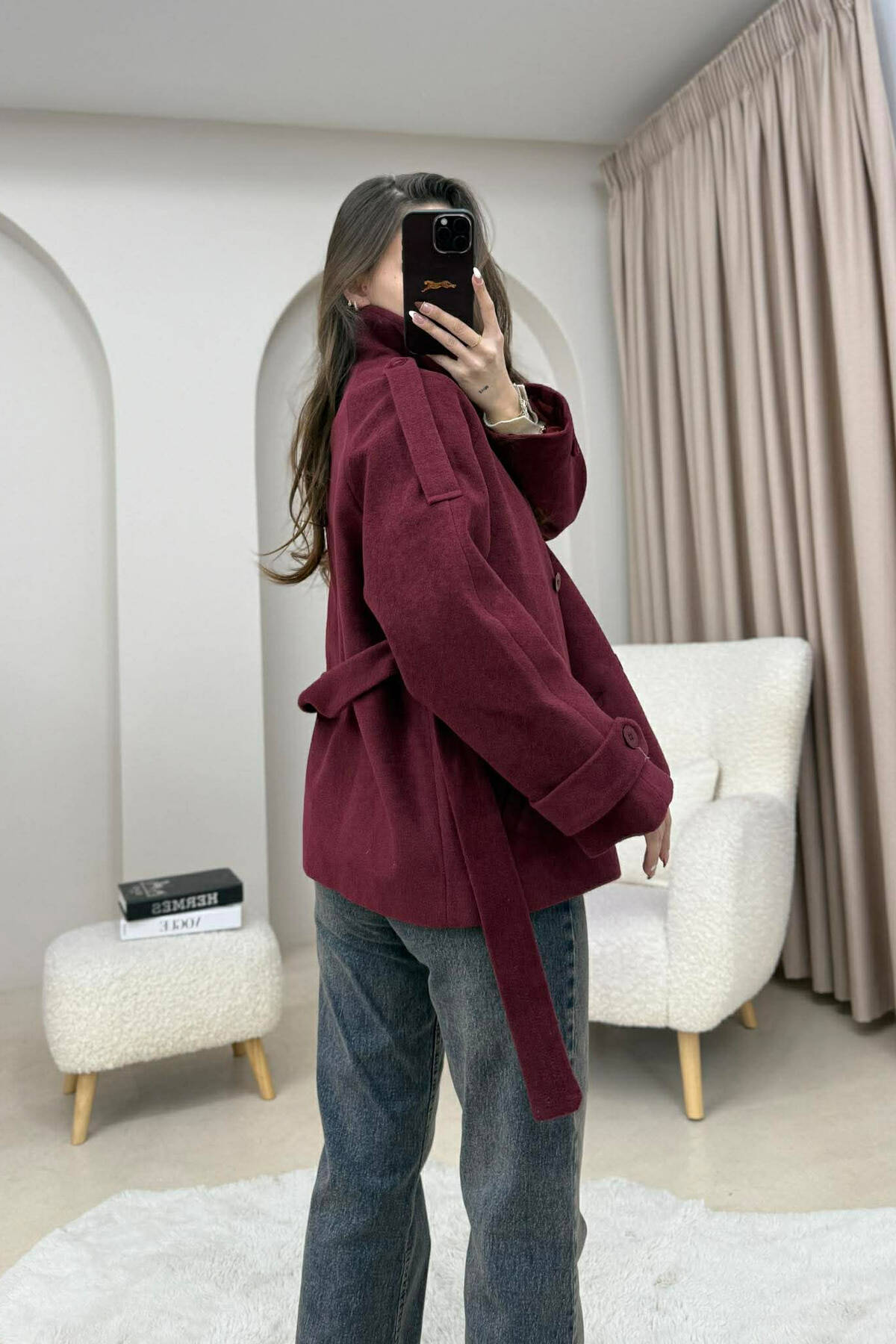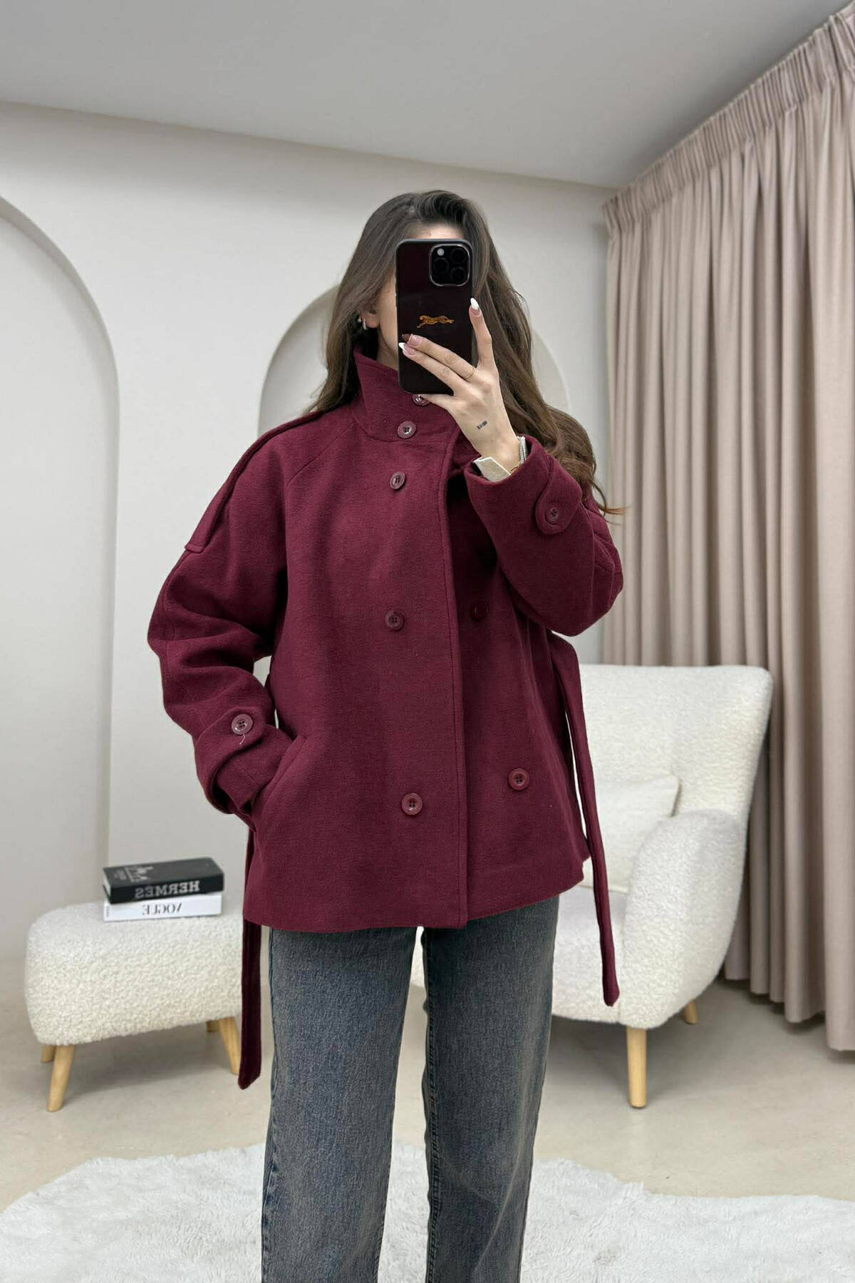 PALLTO NJE NGJYRESHE ME BUTONA DHE ME DETAJIN E RRIPIT PER FEMRA NE NGJYRE VISHNJE