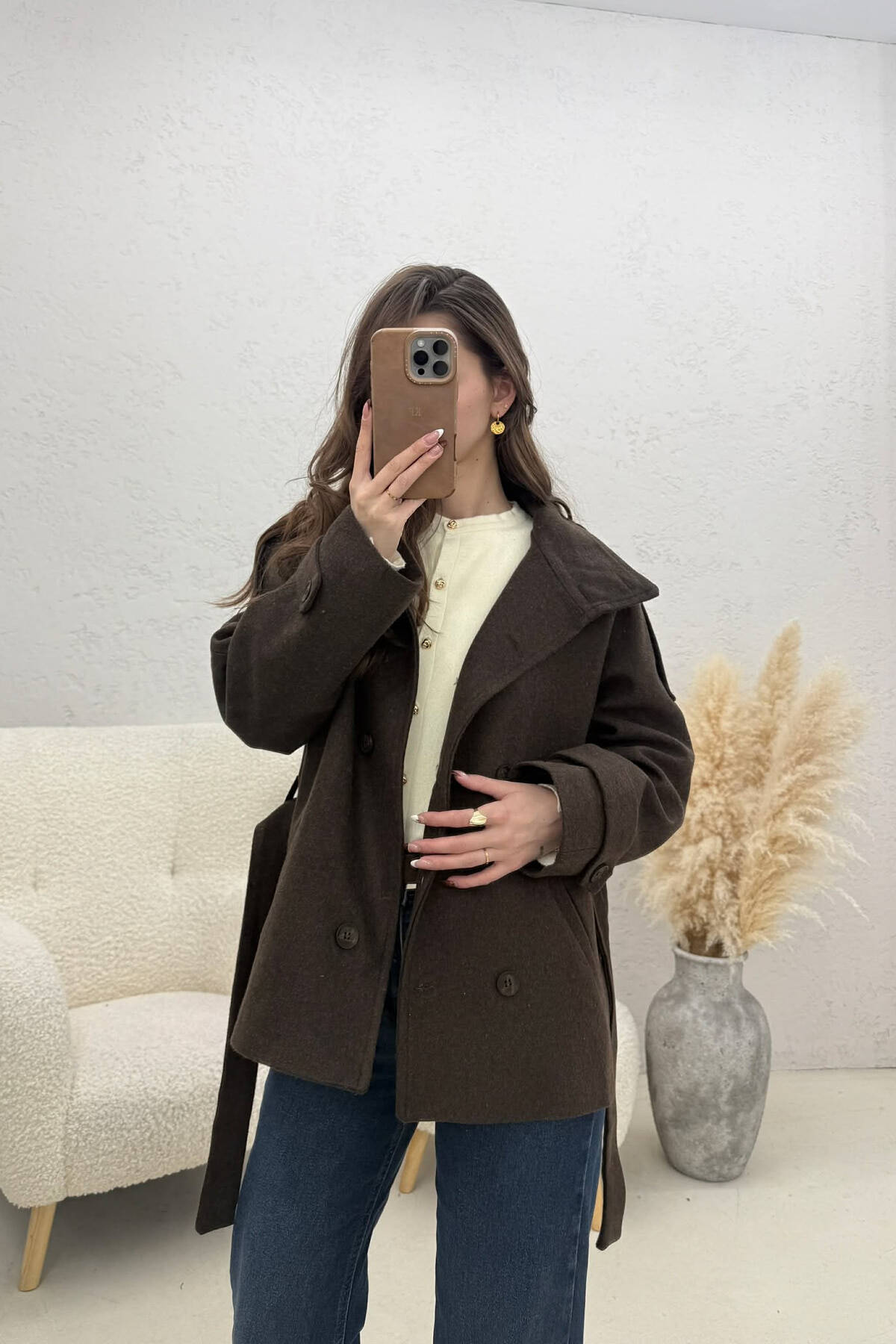 PALLTO NJE NGJYRESHE LEKURE ME KOPSA DHE ME DETAJIN E RRIPIT NE NGJYRE KAFE