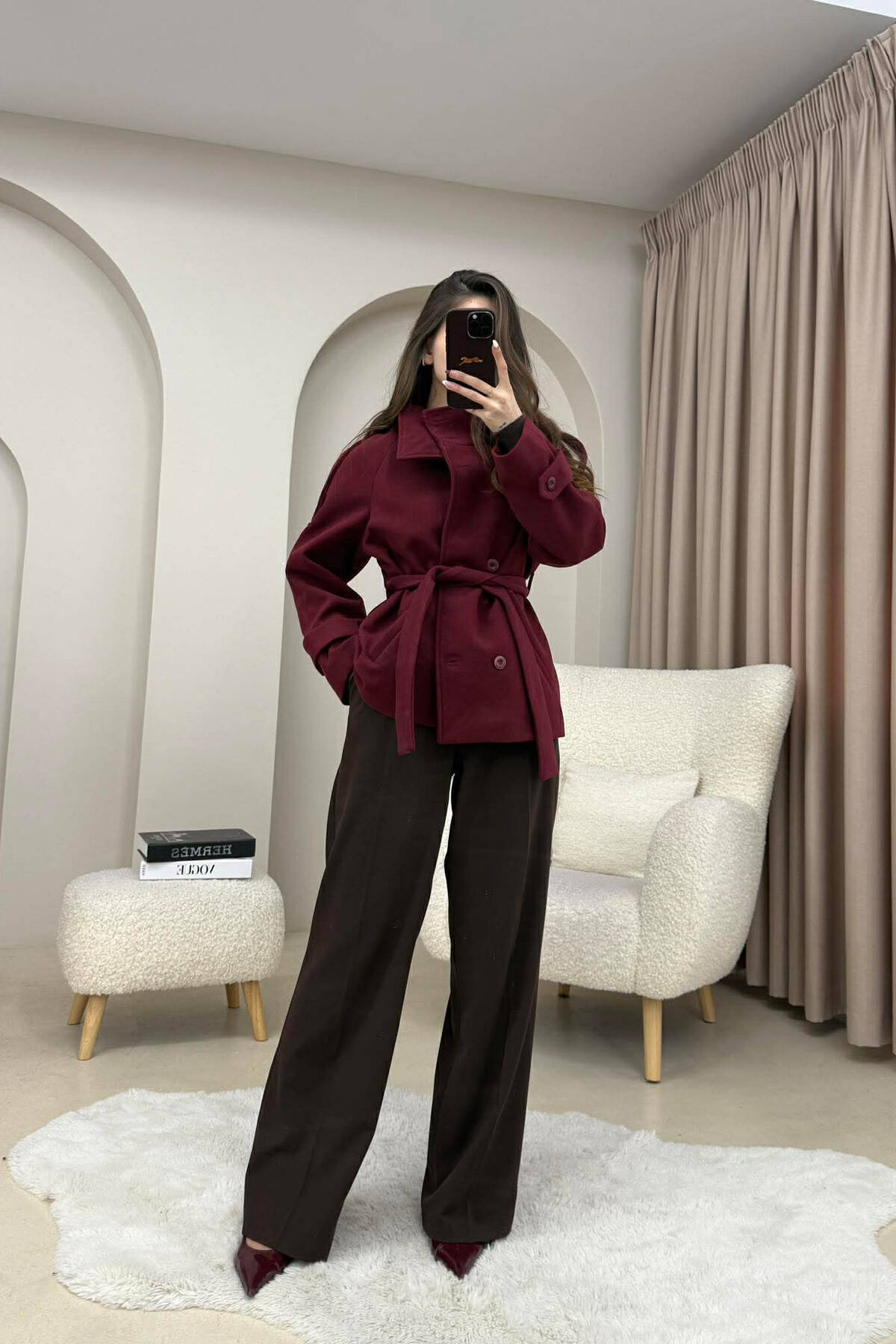 PALLTO NJE NGJYRESHE KAMOSH PER FEMRA NE NGJYRE VISHNJE TE ERRET