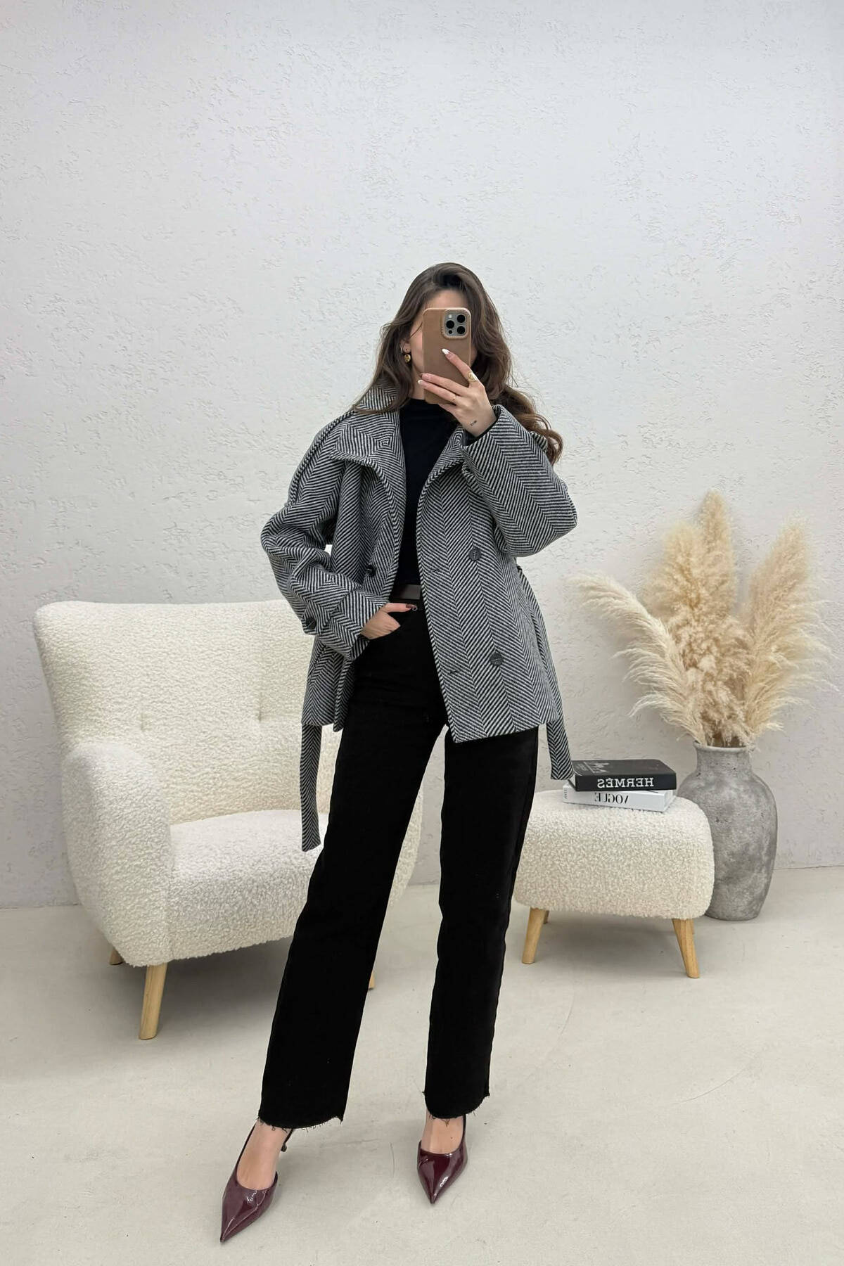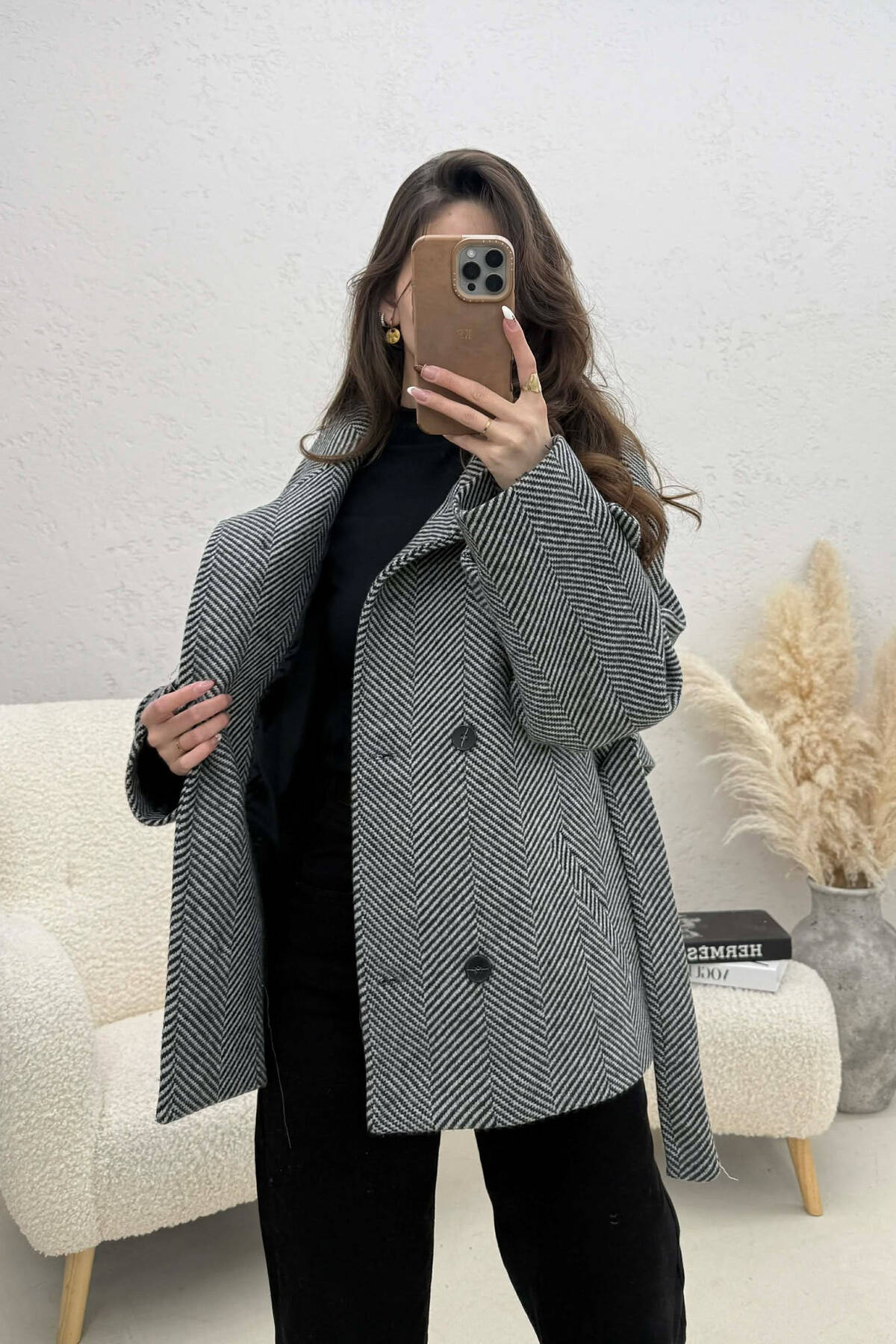 PALLTO NJE NGJYRESHE ME BUTONA DHE ME DETAJIN E RRIPIT PER FEMRA NE NGJYRE UTHULL