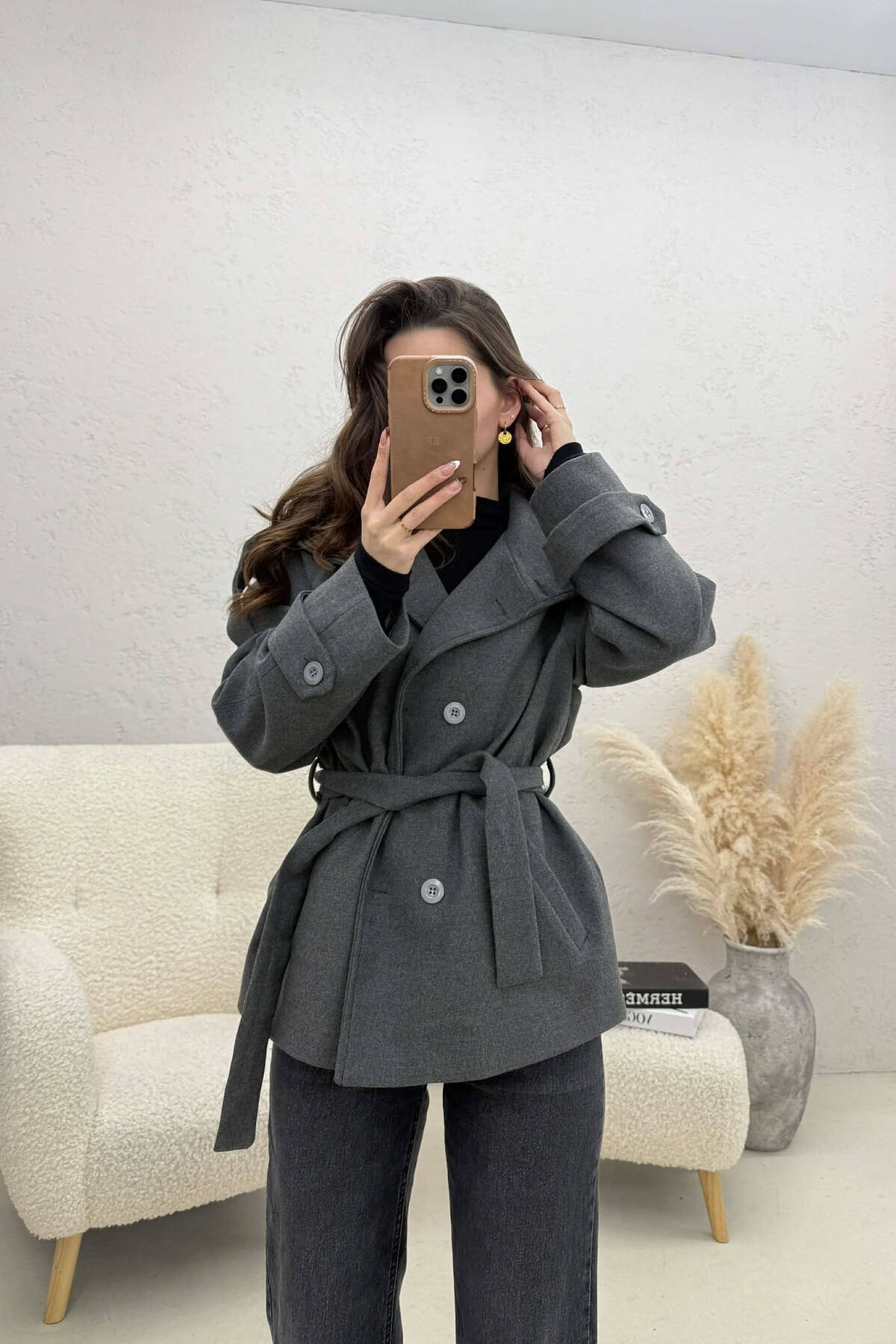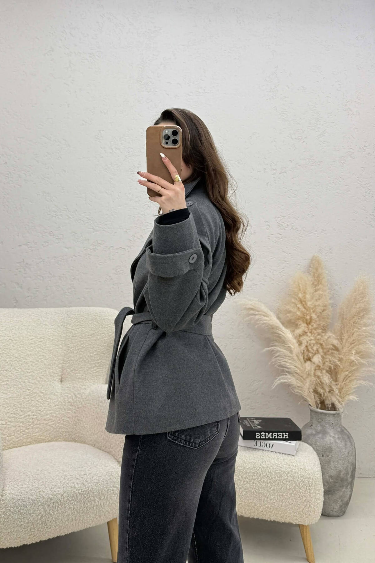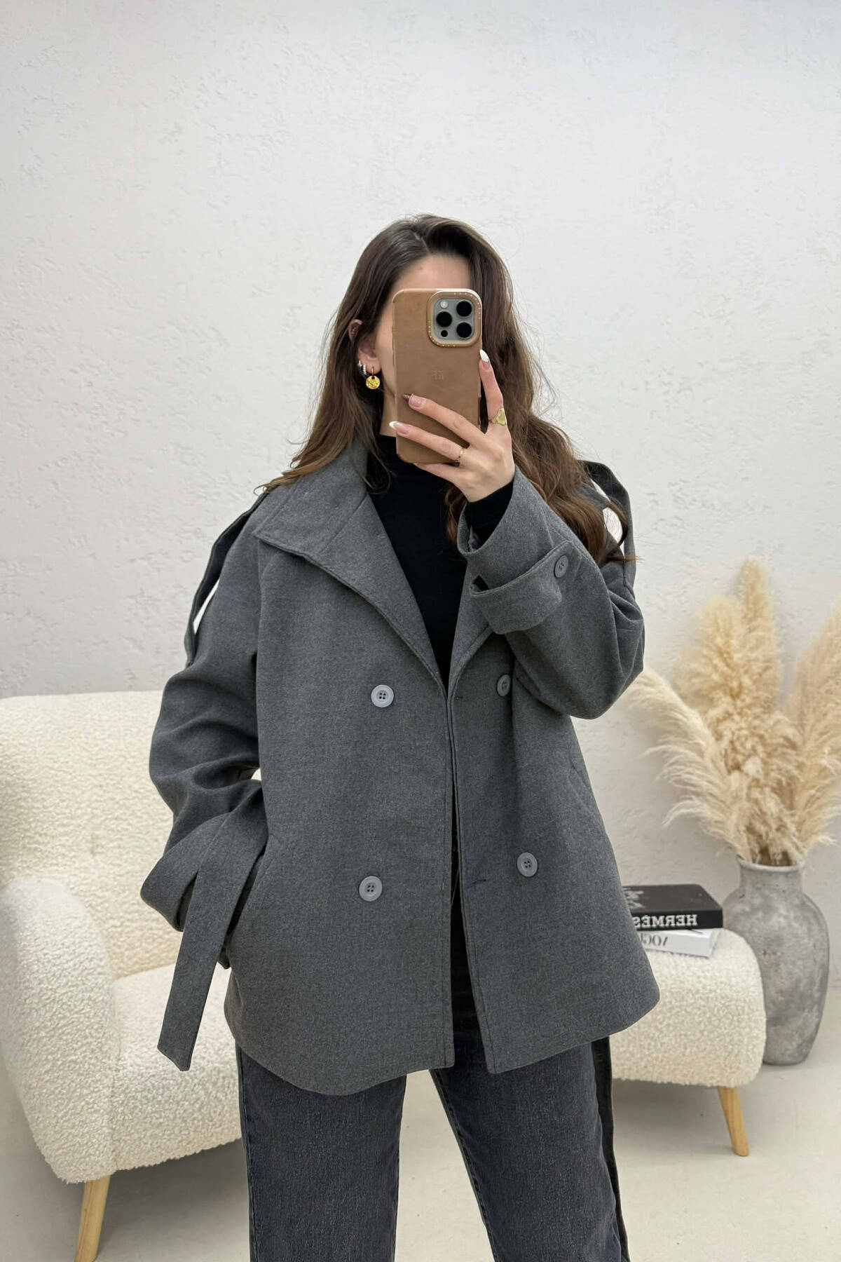 PALLTO NJE NGJYRESHE ME BUTONA DHE ME DETAJIN E RRIPIT PER FEMRA NE NGJYRE UTHULL