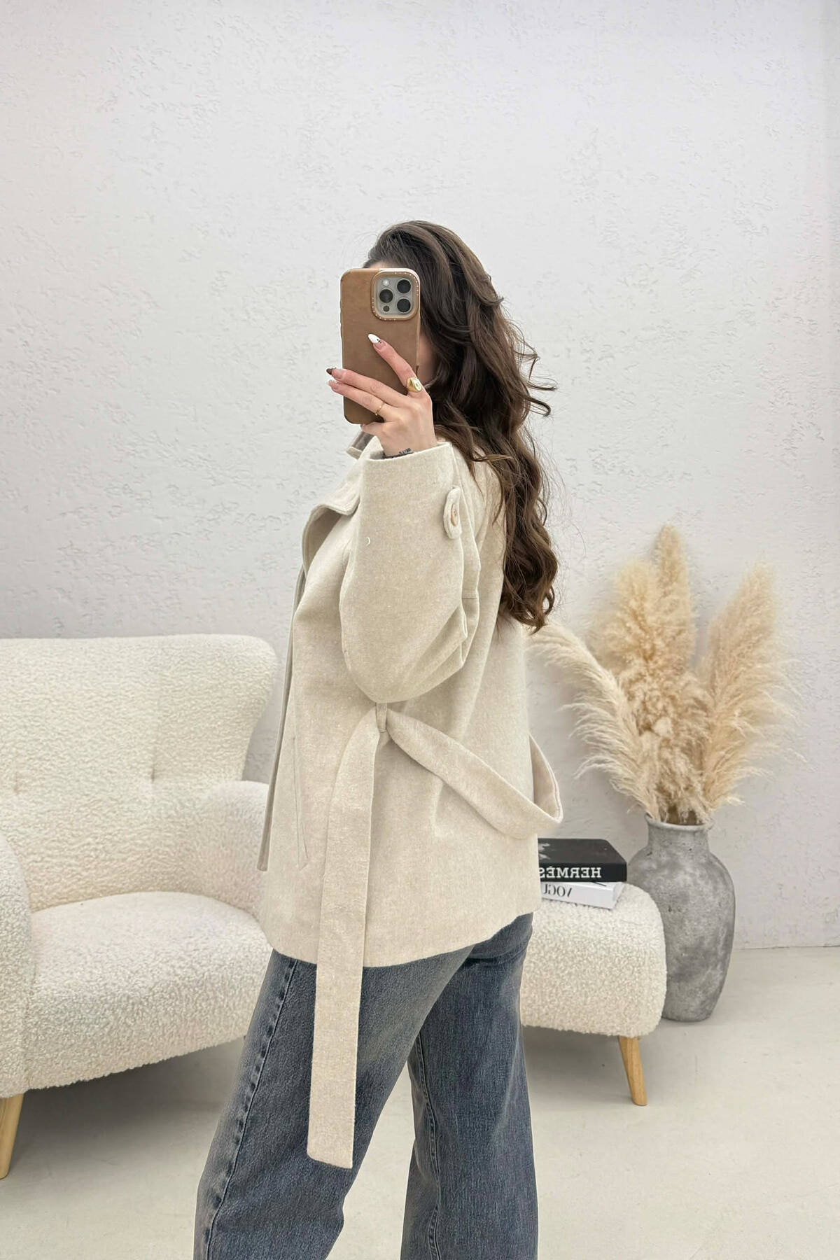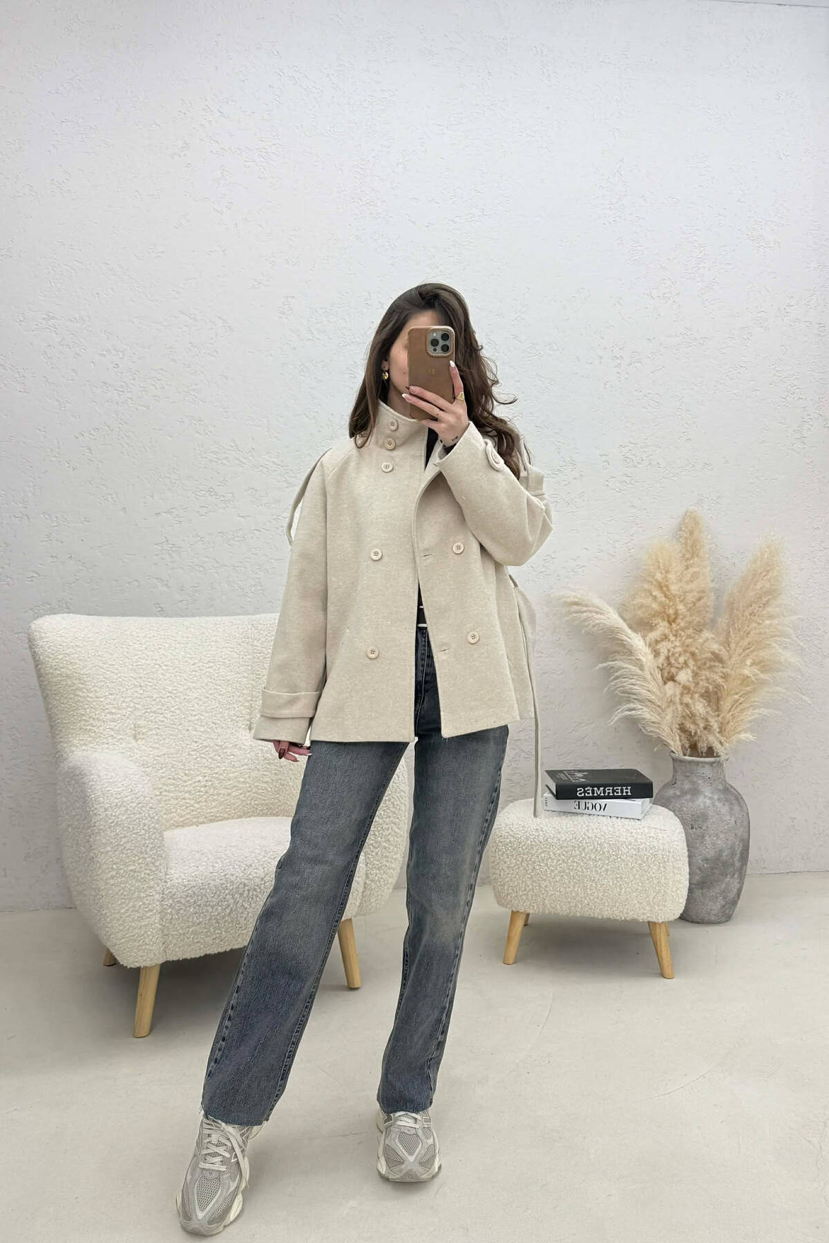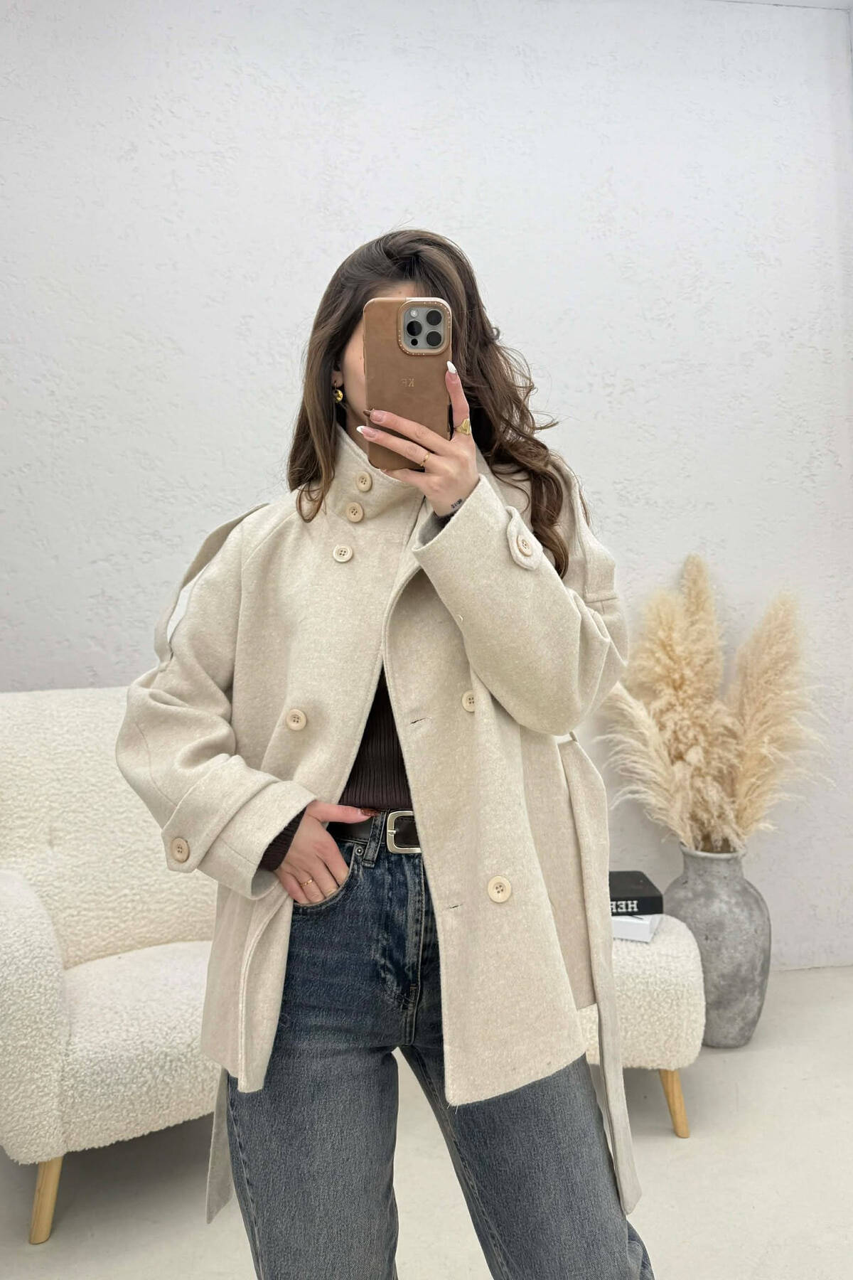 PALLTO NJE NGJYRESHE ME BUTONA DHE ME DETAJIN E RRIPIT PER FEMRA NE NGJYRE UTHULL