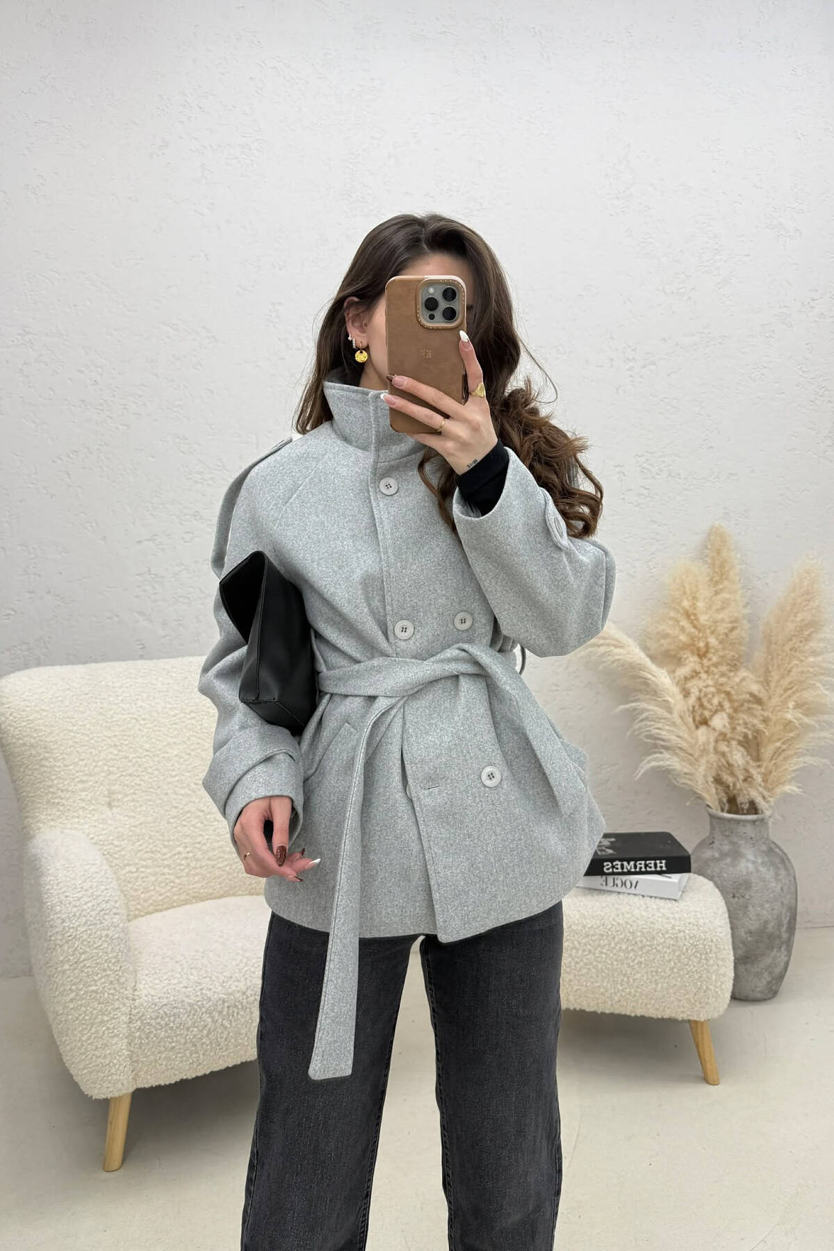 PALLTO NJE NGJYRESHE ME BUTONA DHE ME DETAJIN E RRIPIT PER FEMRA NE NGJYRE UTHULL