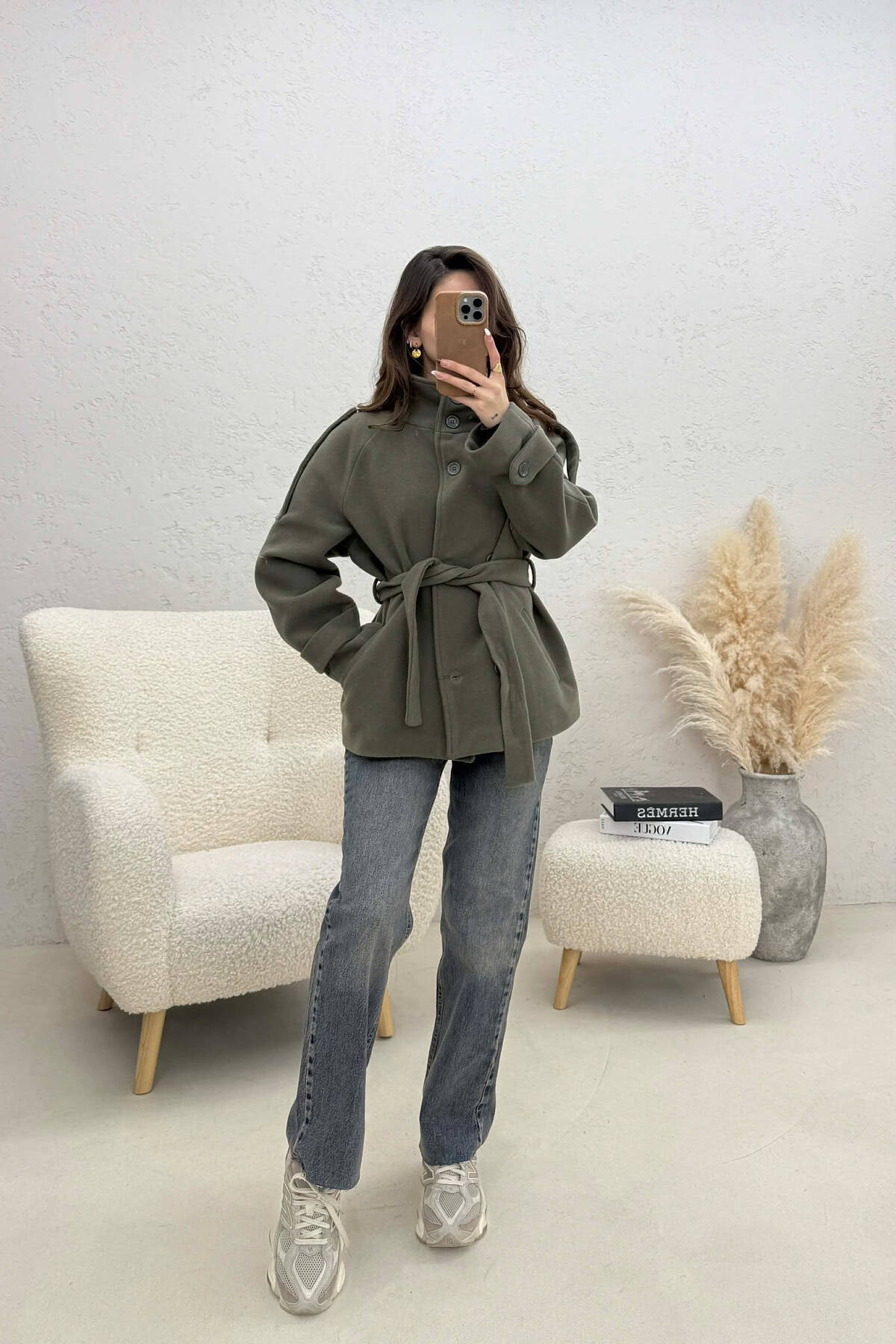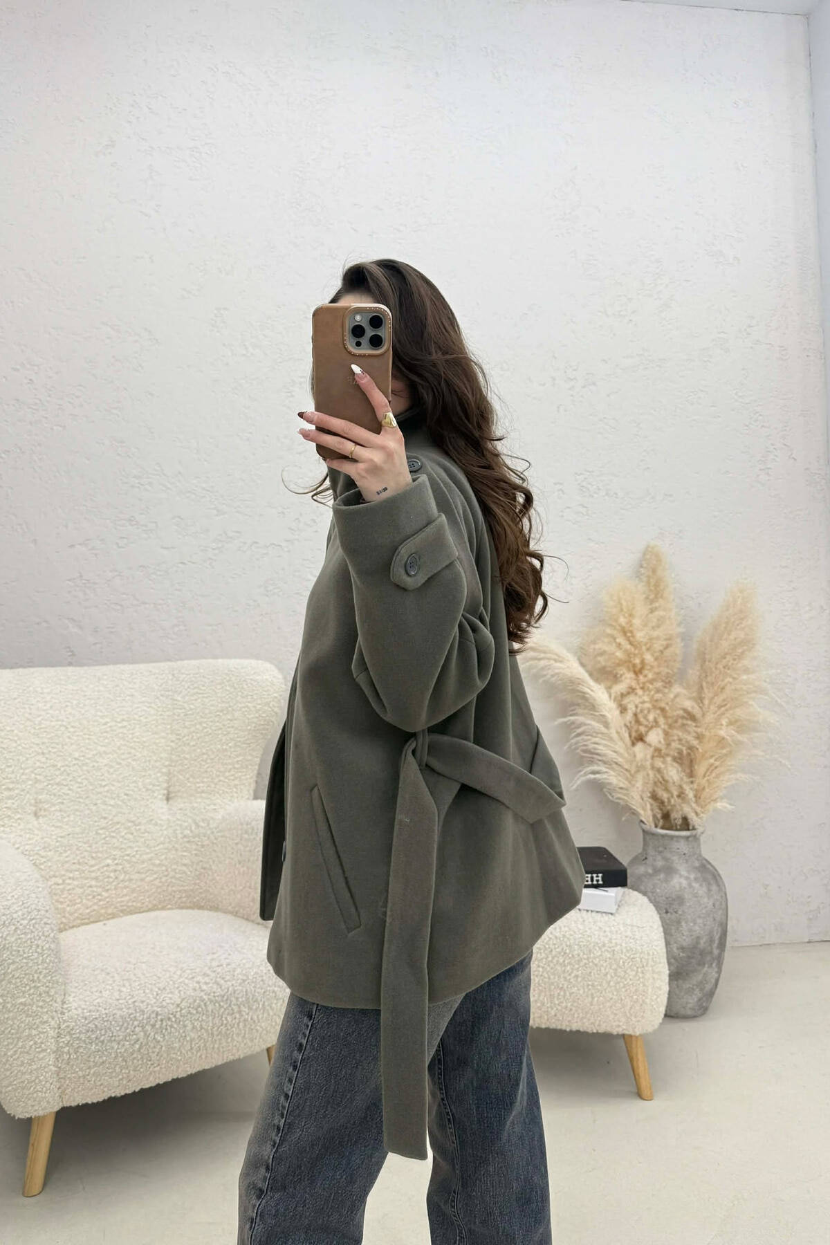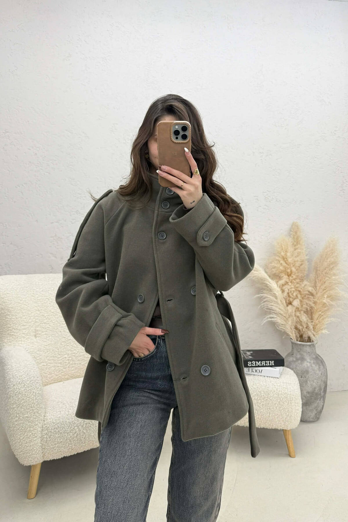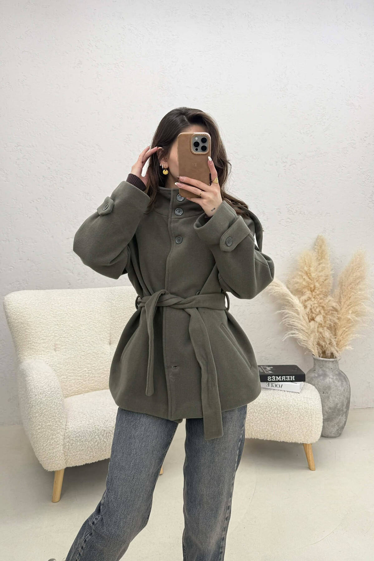 PALLTO NJE NGJYRESHE ME BUTONA DHE ME DETAJIN E RRIPIT PER FEMRA NE NGJYRE UTHULL
