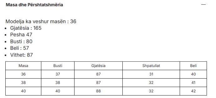 Size chart