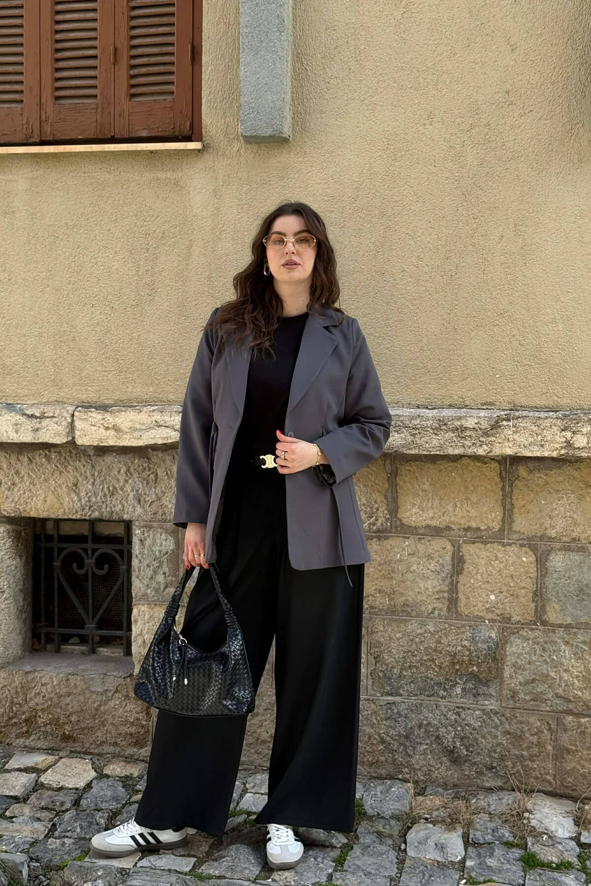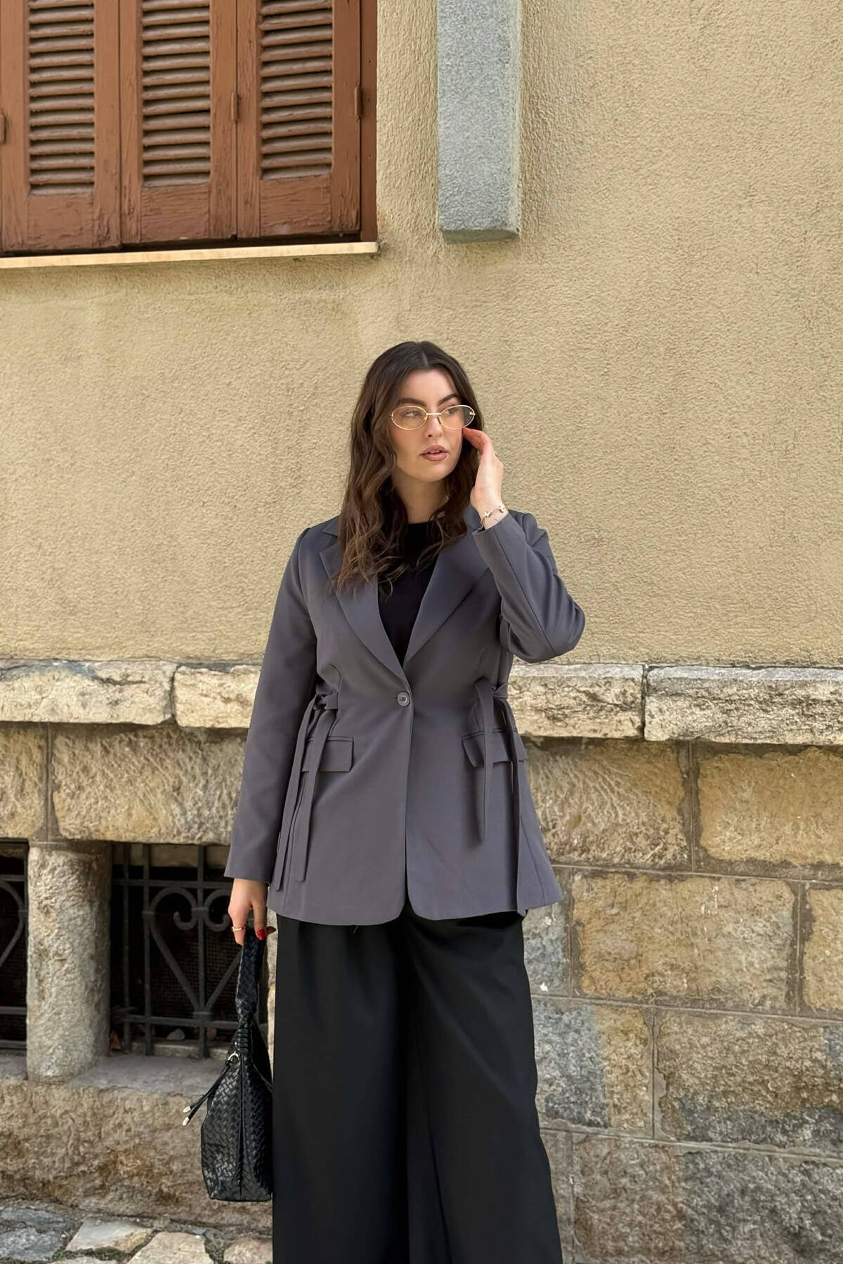 ONE COLOR BUTTONED WOMAN JACKET DARK GREY/GEE