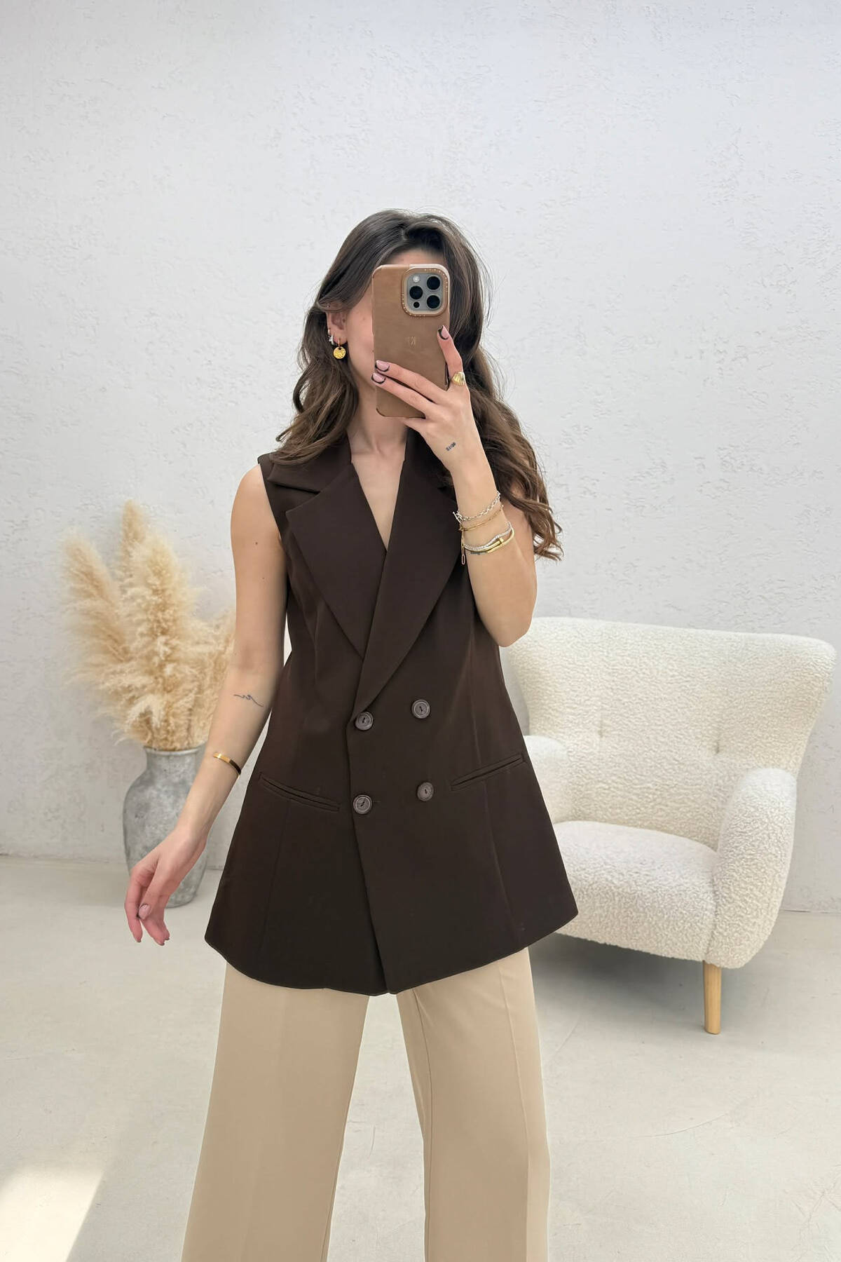 ONE COLOR BUTTONED WOMAN VEST BROWN/KAFE