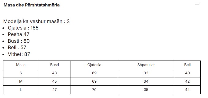 Size chart