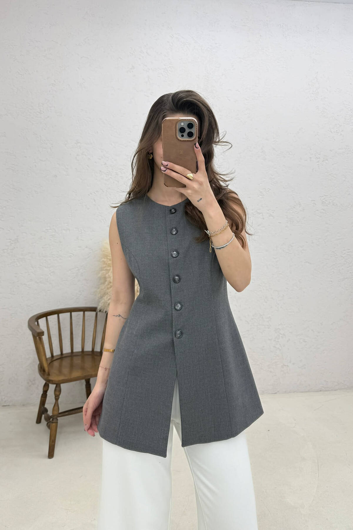ONE COLOR BUTTONED WOMAN VEST GREY/GRI