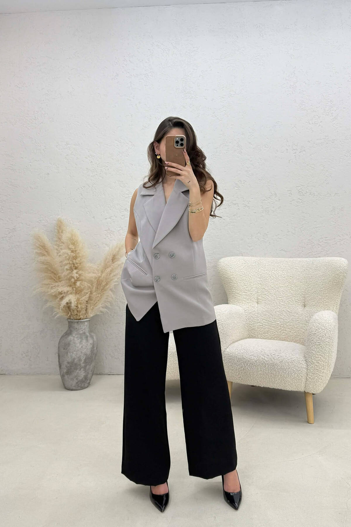 ONE COLOR BUTTONED WOMAN VEST GREY/GRI
