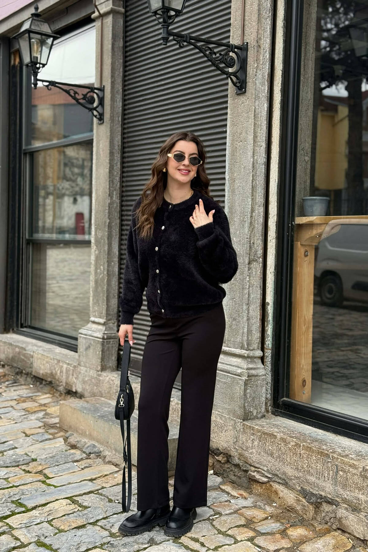 ONE COLOR BUTTONED WOMEN CARDIGAN BLACK/ E ZEZE