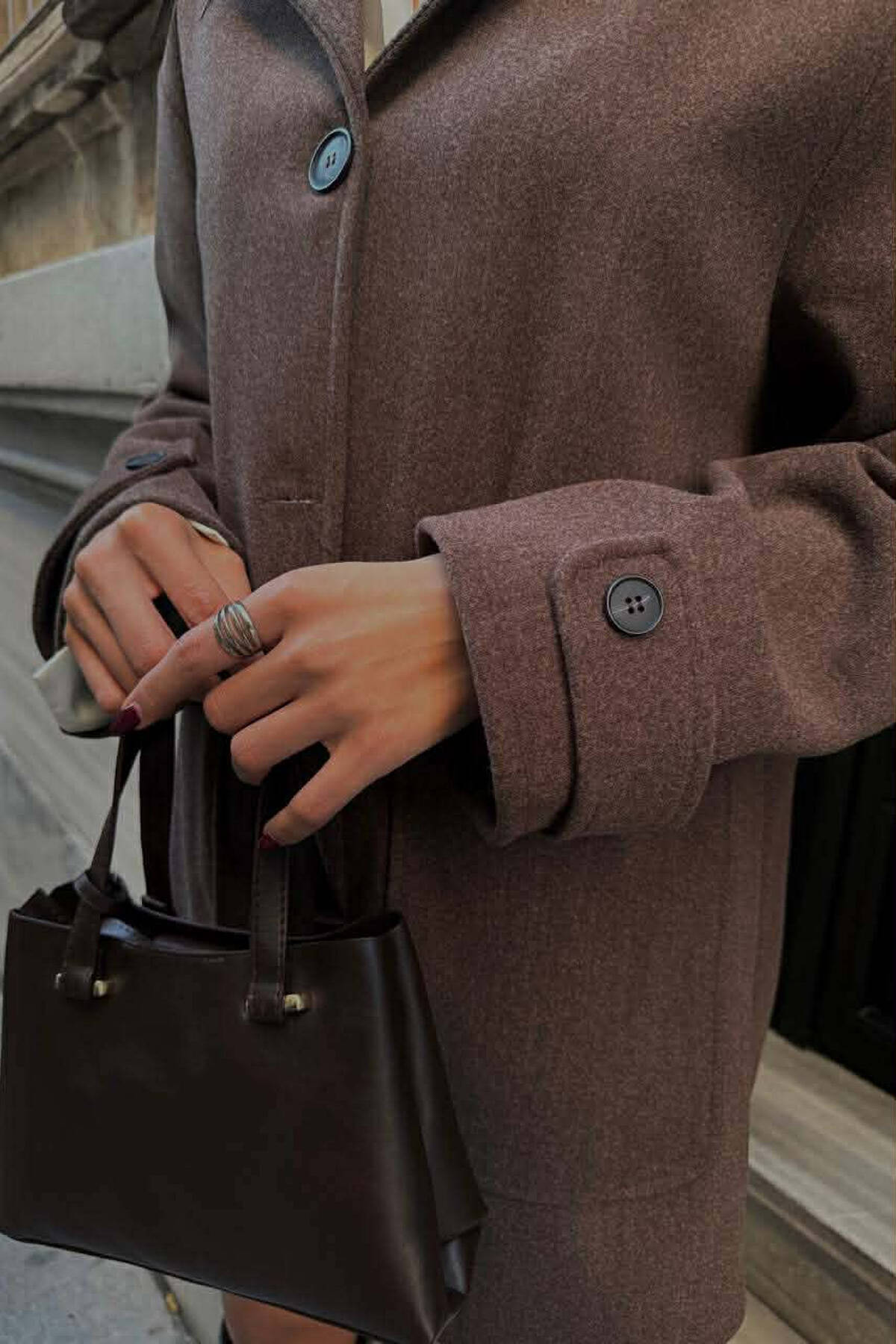 ONE COLOR BUTTONED WOMEN JACKET DARK BROWN/KAE