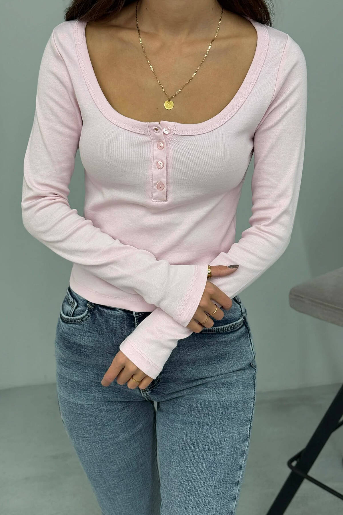 ONE COLOR BUTTONED WOMEN SWEATSHIRT BABY PINK/ROZB