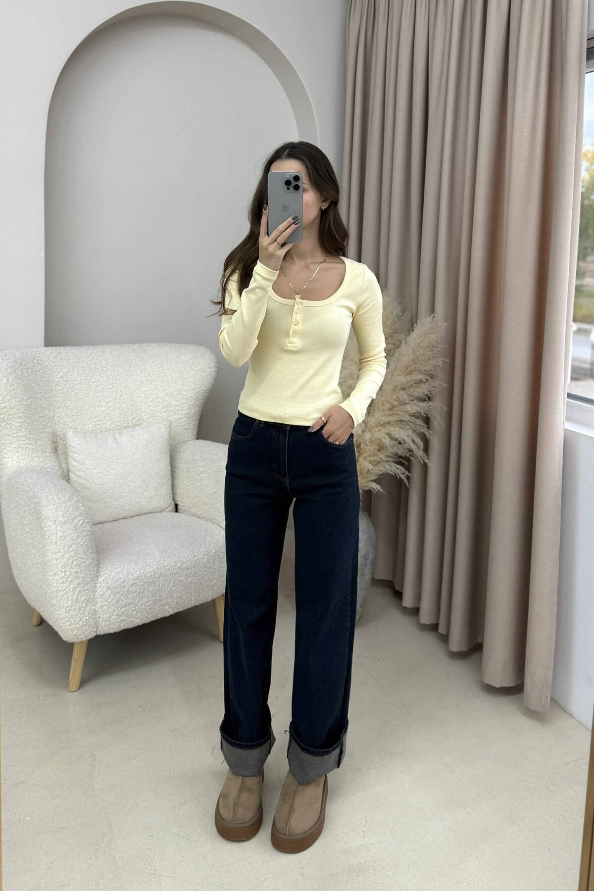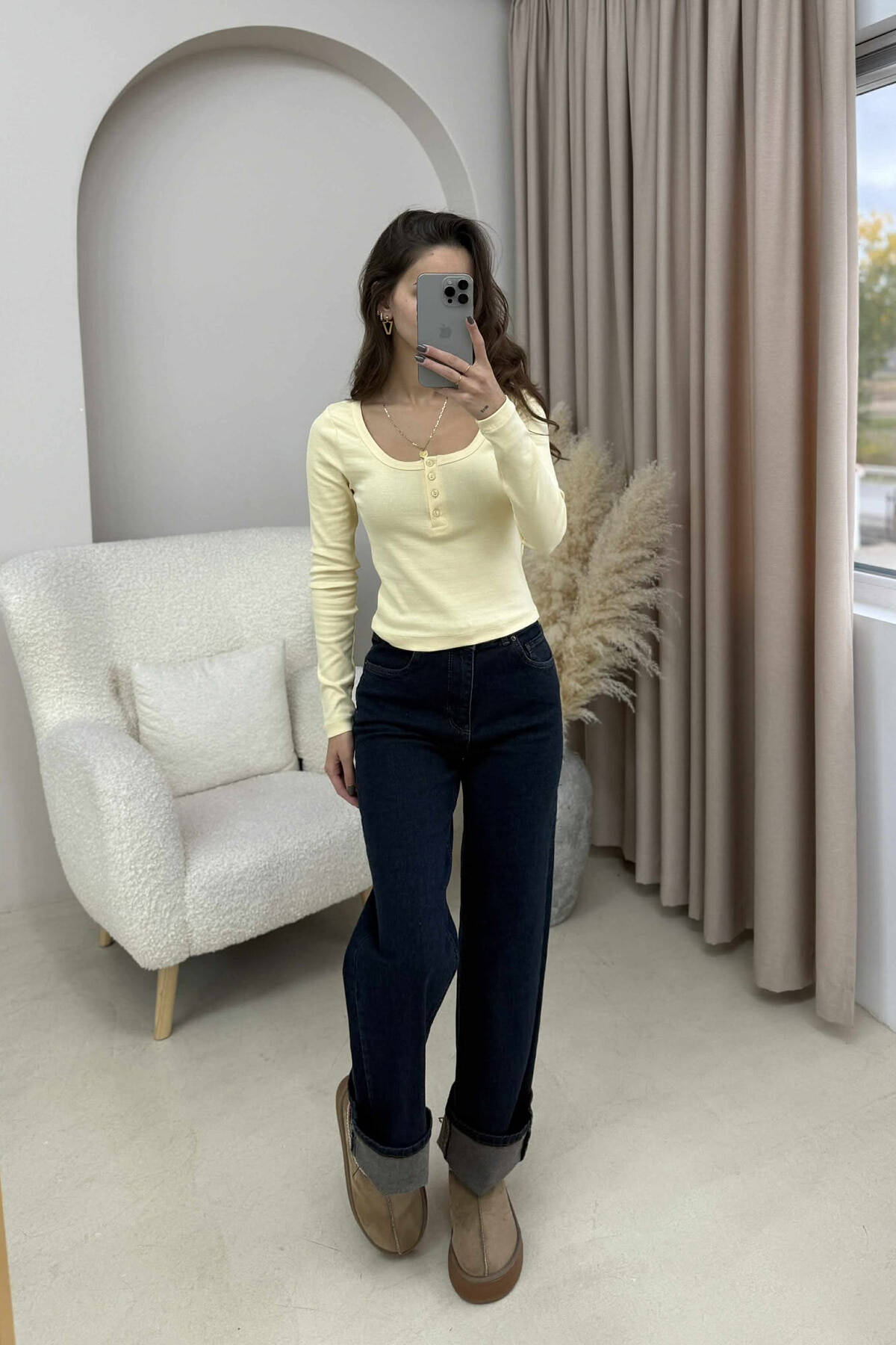 ONE COLOR BUTTONED WOMEN SWEATSHIRT YELLOW/E VERDHE