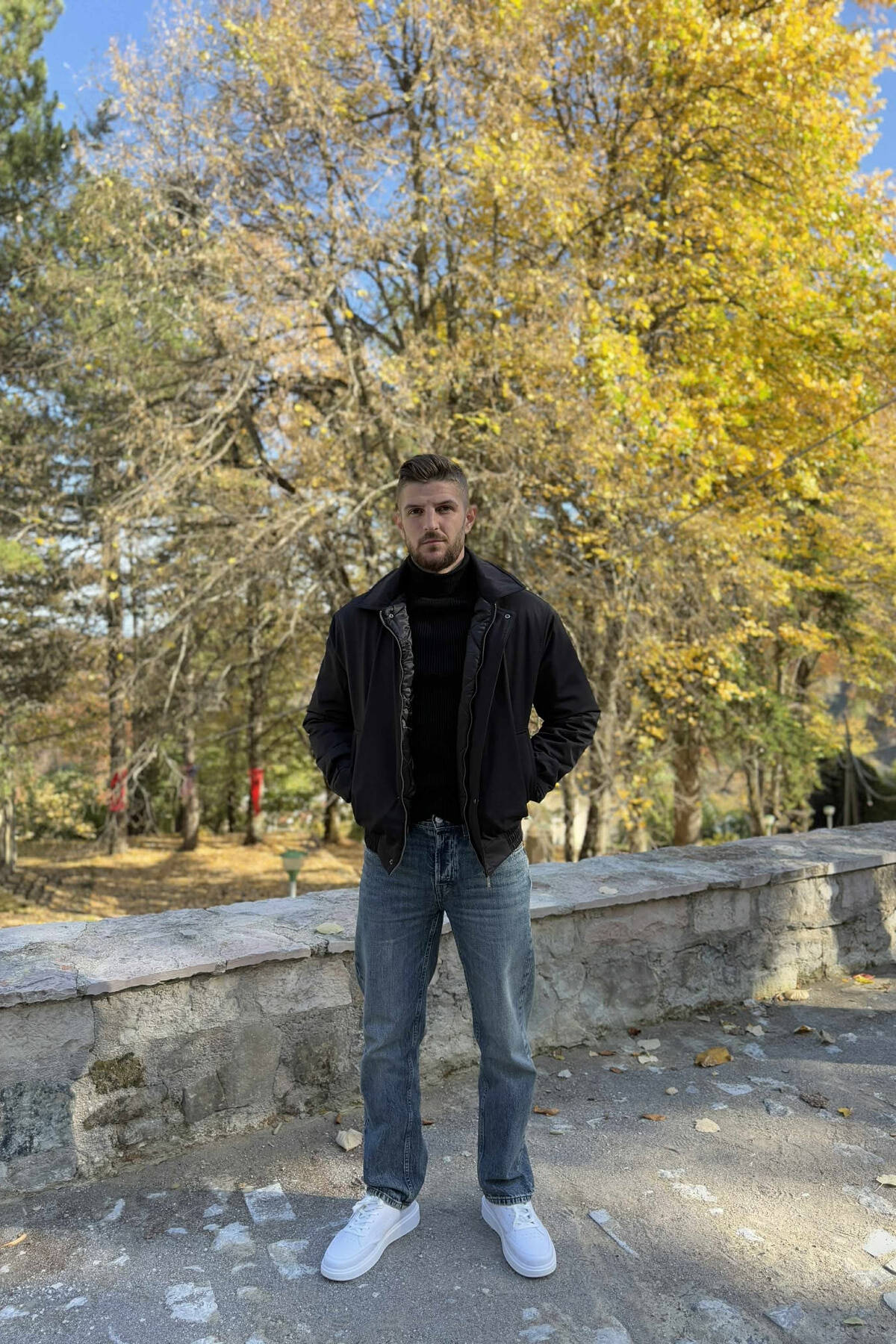 SIMPLE LEATHER PUFFER BELT-NECK MEN JACKET BLACK/ E ZEZE