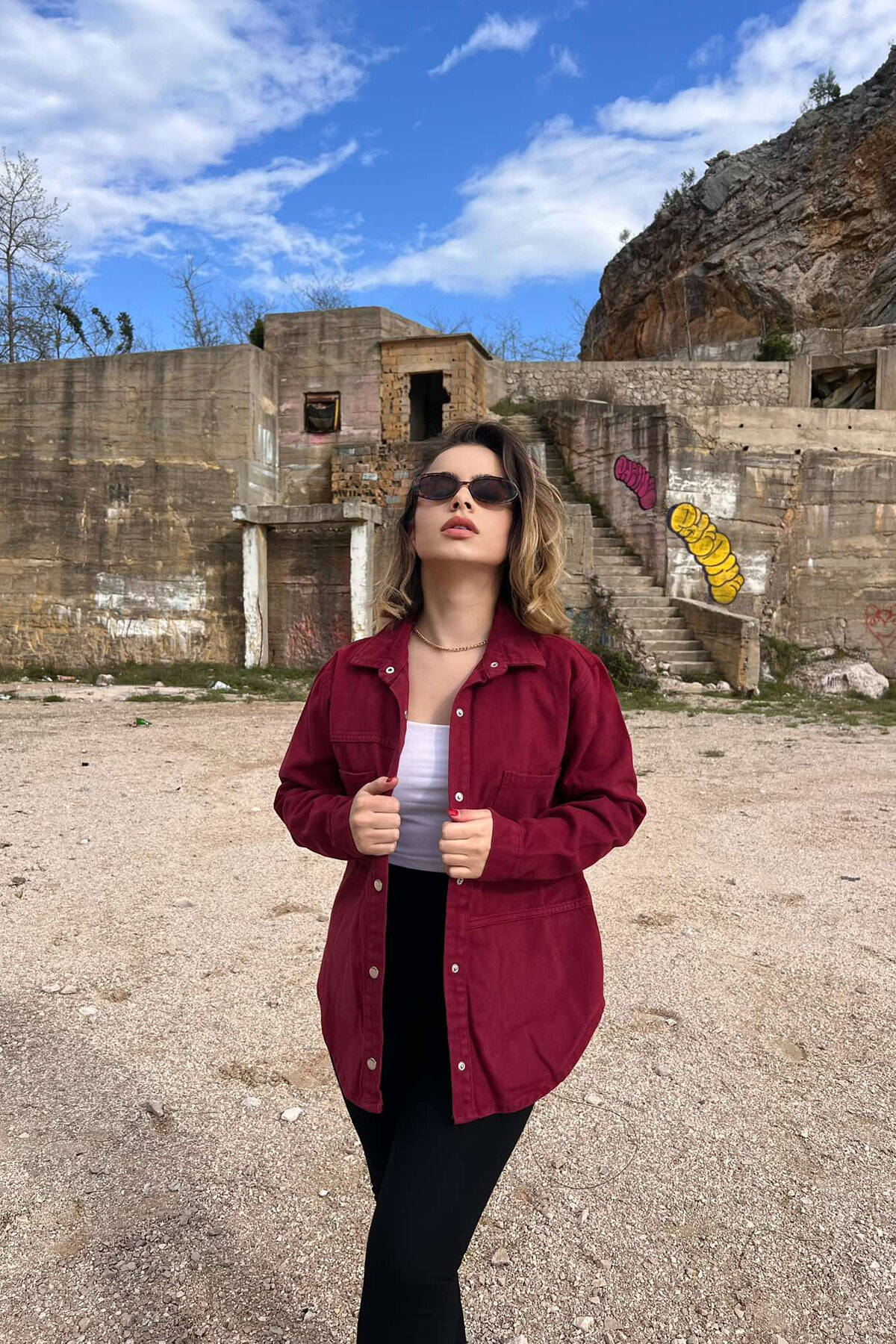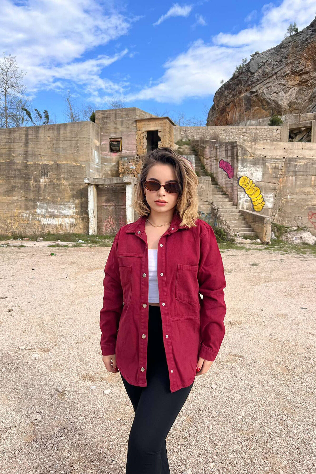 ONE COLOR BUTTONS DENIM WOMEN JACKET BURGUNDY/VISHNJE