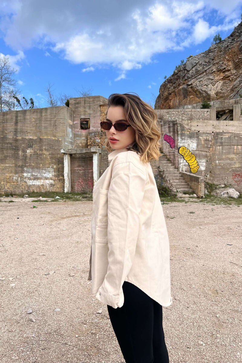 ONE COLOR BUTTONS DENIM WOMEN JACKET CREAM/KREM