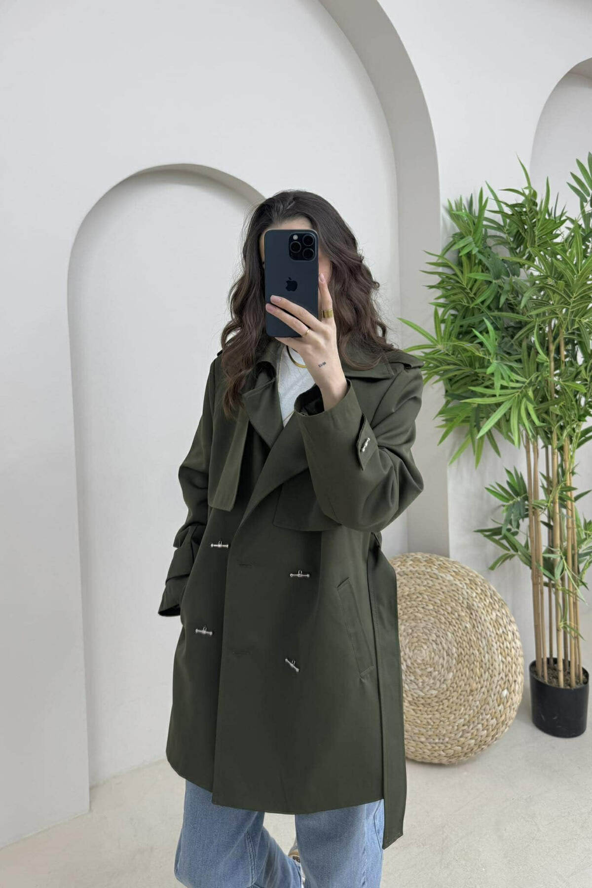 ONE COLOR BUTTONS DETAIL LACING WOMEN JACKET GREEN/JESHILE